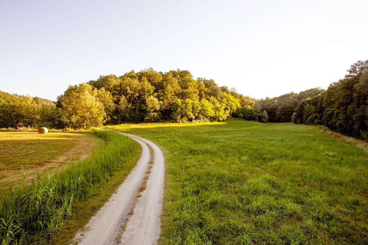 Az ingatlan körül 31 hektár (76, 60 hektár) mezőgazdasági terület, 47 hektár (116, 14 hektár) erdő, és magában foglalja a szőlőültetvényeket és az olajfaligeteket, nem beszélve az épületekhez tartozó albérlő földjeiről.