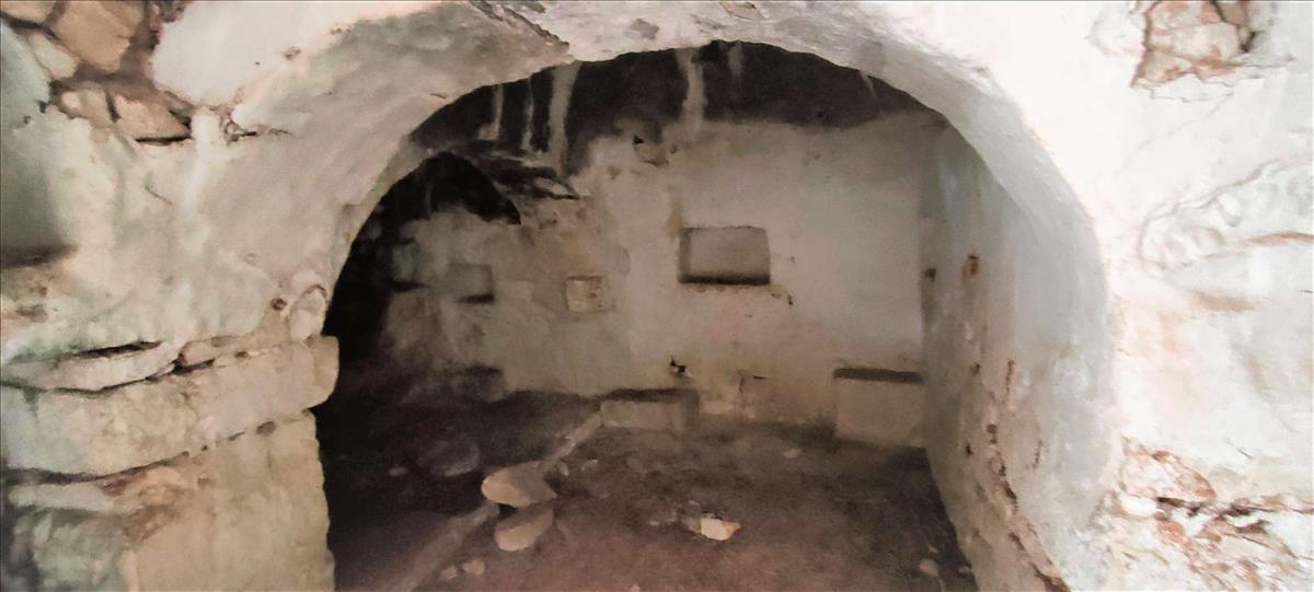 Két bejárati út van, és a fal mindkét oldalán évszázados kőfalak húzódnak.