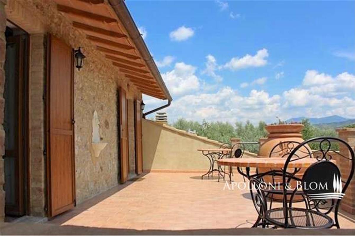 A ház gyönyörű kőhomlokzattal, faburkolatú dupla üvegezésű ablakokkal és Toszkán vidékre jellemző finom építészeti részletekkel büszkélkedhet, köztük a kézzel készített terrakotta padlóval és a megvilágított fa gerendákkal.