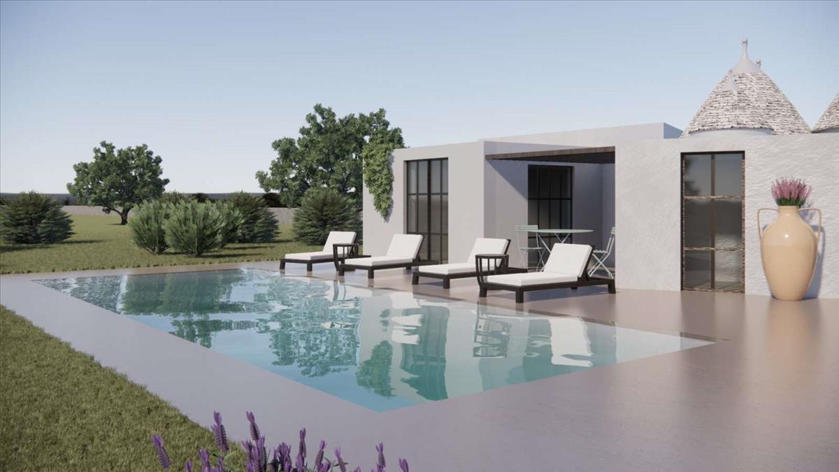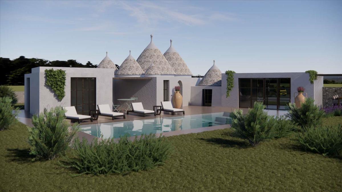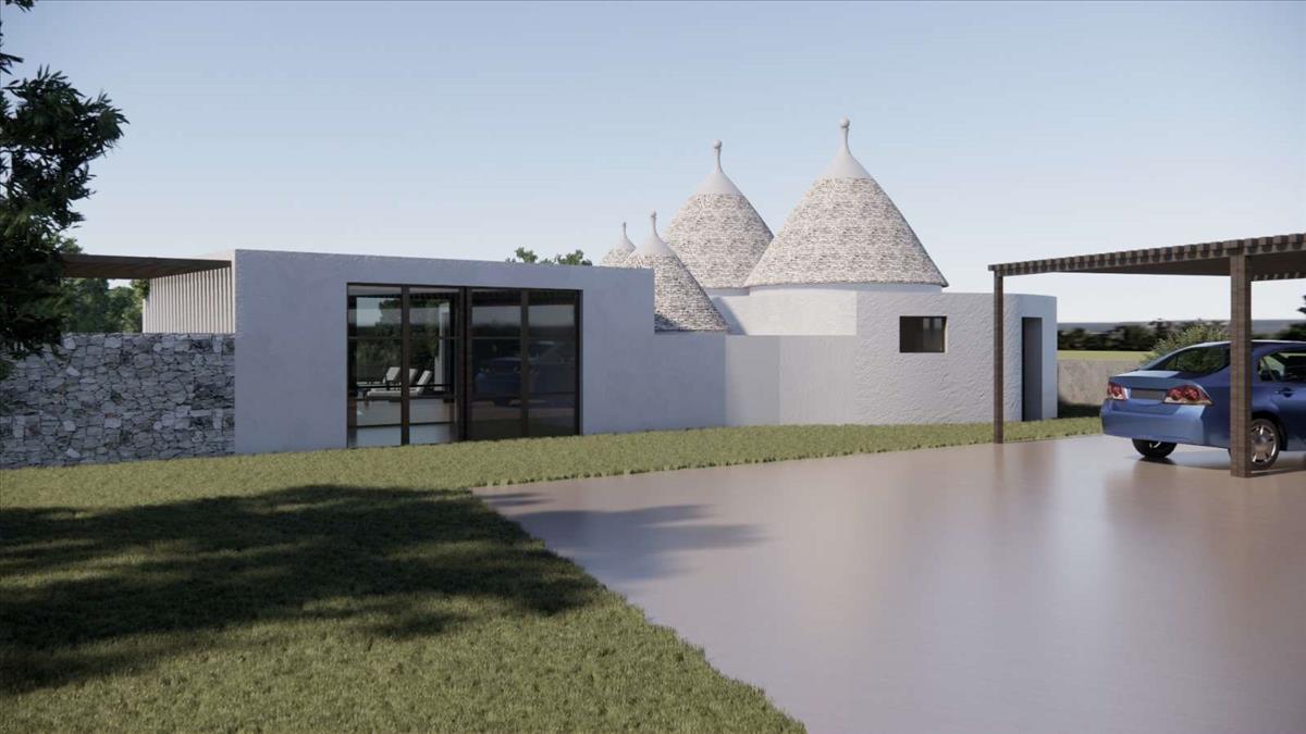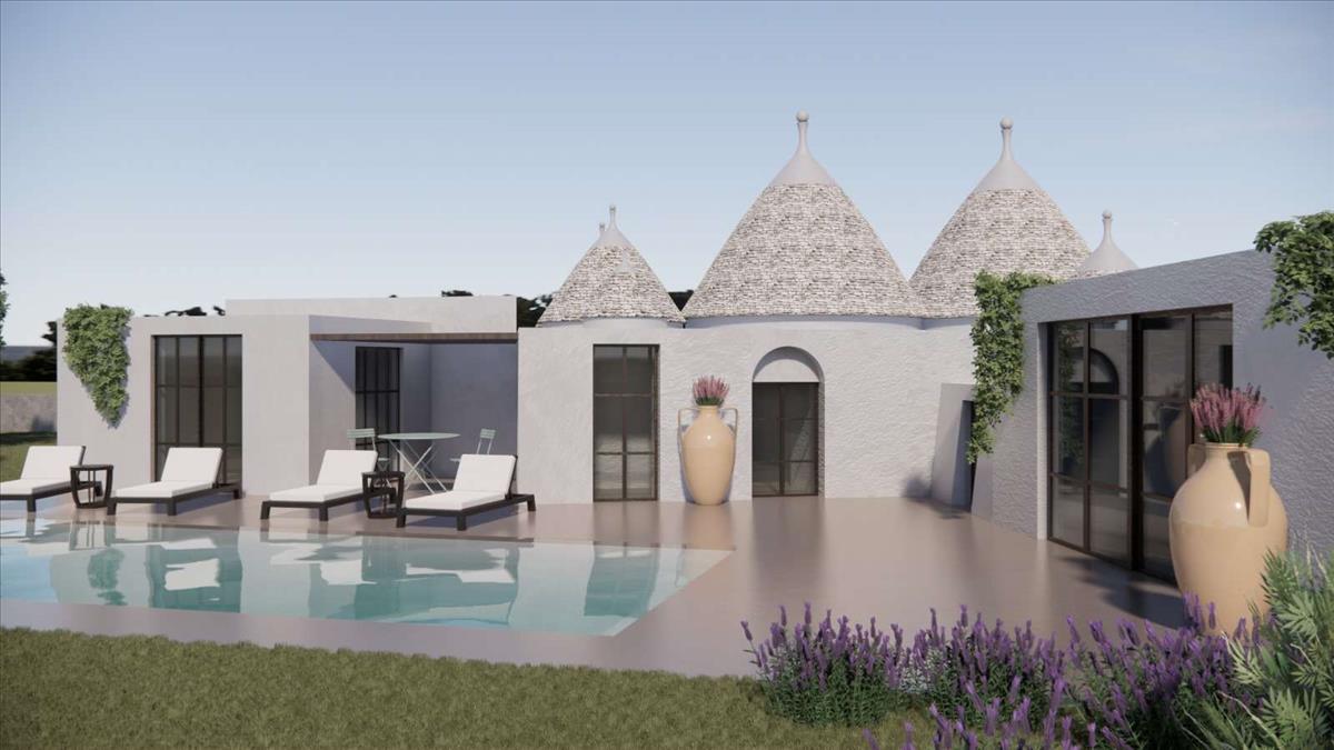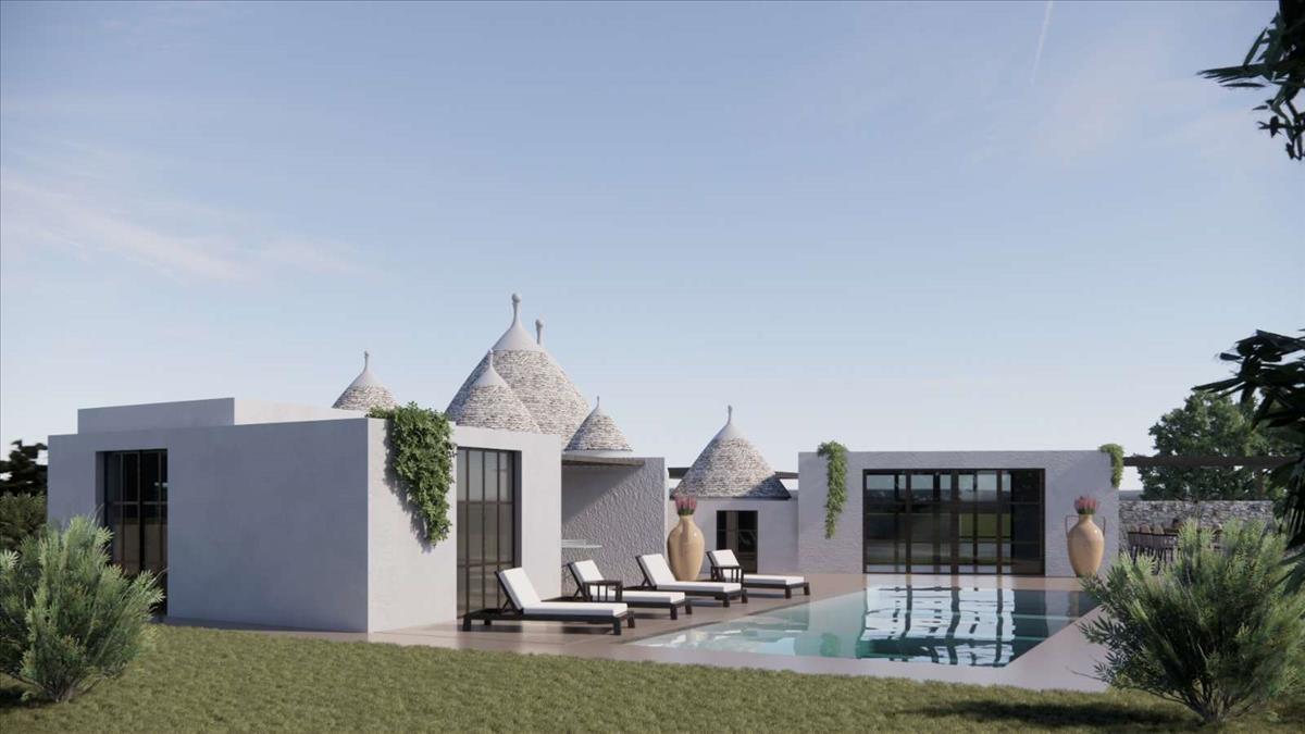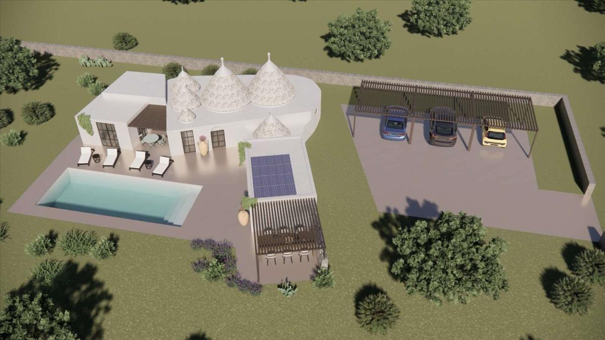 Gyönyörű, 5-kúp trullo és lamia kombinált, 67 m²-es ingatlan fejlesztésre alkalmas. Lehetőség van bővíteni 120 m²-re, így összesen egy 3 hálószobás otthon terasszal és medencével valósítható meg. Prémium elhelyezkedés és emelt pozíció a festői Itria-völgyben, lenyűgöző déli kilátásokkal.