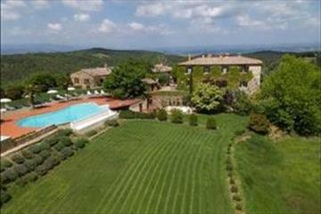 Látványos 17. századi birtok Vescovado di Murlo, mindössze 20 percre Sienától. A birtok a dombtetőn fekszik, 420 méterrel a tengerszint felett, és lélegzetelállító 360°-os panorámás kilátásban gyönyörködhetsz. 161 hektár területén erdő, olajfa-ültetvény és szántóföld található. Vescovado di Murlo falu autóval csak néhány perc alatt elérhető, és rövid autóúttal felfedezheted Val d’Orcia és Crete Senesi festői falvait, amelyek eredetét az i.e. V. és II. századra vezetik vissza. Firenze 110 km-re van tőled, Róma pedig 250 km-re.A birtok hatalmas: az épületek összes hasznos alapterülete körülbelül 1800 m2. Az ingatlanon egy korabeli villa található, amely 5 lakásra van osztva. Ezen kívül egy korábbi templom, egy régi istálló, egy vendégház és egy tipikus toszkán stílusban épült villa is része. Az egész birtokot a jelenlegi tulajdonosok gondosan és teljes egészében felújították, és az évek során mindig karbantartották. Az épületek külső falain a tipikus toszkán kövek láthatók, és az időszaki villa körül díszes szőlő fut. Belseje tipikus toszkán stílusú, sugárzott mennyezetekkel, kézzel készített terrakotta padlóval, látható kövekkel és téglákkal a falakon, ami bucolikus hangulatot teremt. Ugyanakkor a felújítás modern technológiával javította a létesítményeket és rendszereket, hogy csökkentse a fogyasztást. Ma a vendégek bájos hangulatban élvezhetik a környezetet, miközben a modern technológiák előnyeit is kihasználhatják. A szálláshelyet egy nyugodt kert, grill, végtelen úszómedence, szép teraszok és zöldséges kert tarkítja.