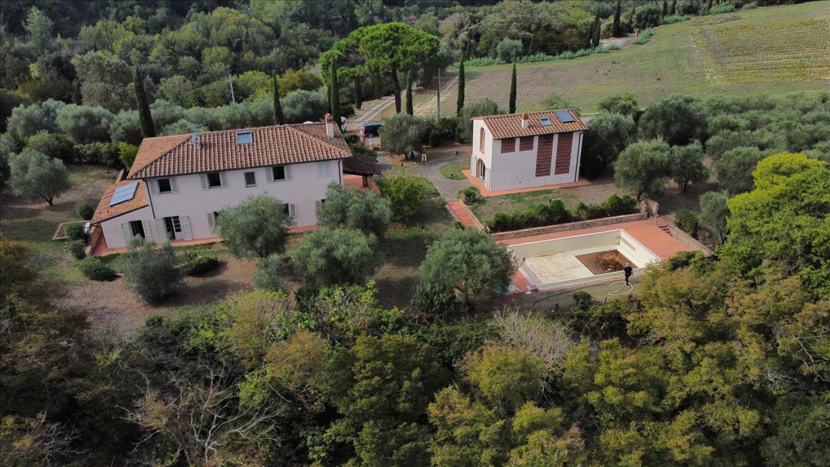 Pisa dombok között presztízs villákat kínálunk, mindössze fél órányira a Pisa International repülőterétől, szép panorámás pozícióban, és mindössze 15 percre Toszkána és a part legvonzóbb városaihoz vezető autópályától, amely autóval körülbelül 45 perc alatt megtehető.A villák egy csodálatos farmon találhatók, amely 160 ha területű, ebből 25 ha szőlőültetvény termelés alatt (Sangiovese, Merlot, Cabernet Sauvignon, Syrah, Petit Verdot, Chardonnay és Viognier) és 15 ha olívaültetvény.