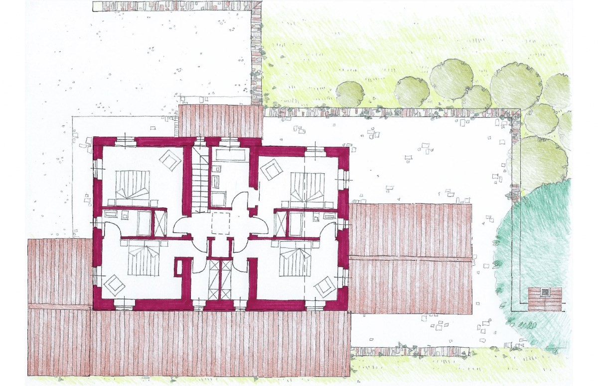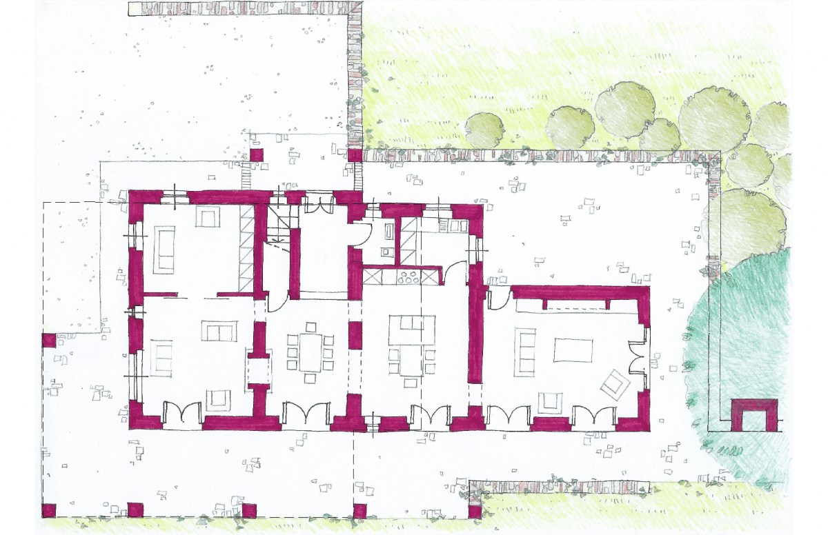 Az ingatlan a te igényeidhez igazítható, de a jelenlegi tervek a következők: Földszint: Nagy konyha-étkező, nappali kandallóval, WC, közüzemi szoba, ensuite hálószoba, pergola.