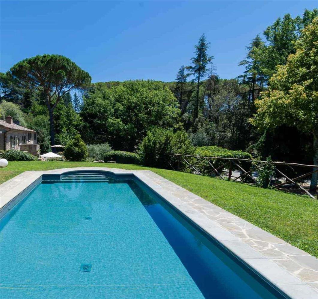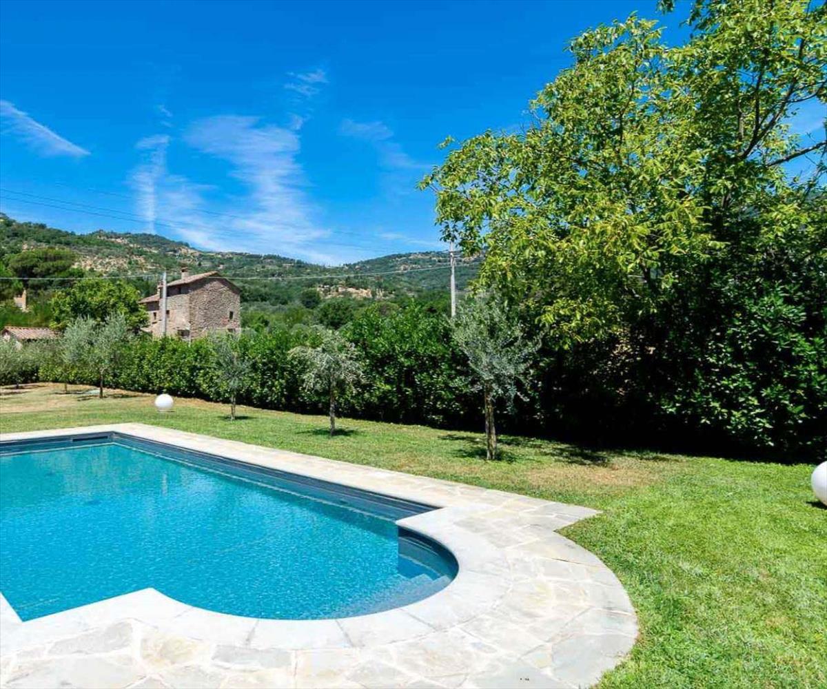 A gyönyörűen felújított parasztház több mint 6000 m2 földet kínál, panorámás úszómedencével, amely lélegzetelállító kilátást nyújt a környező hegyekre. A szabadtéri terek egyformán elbűvölőek és természetesek.