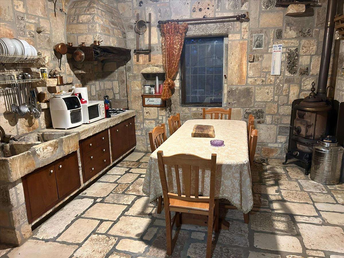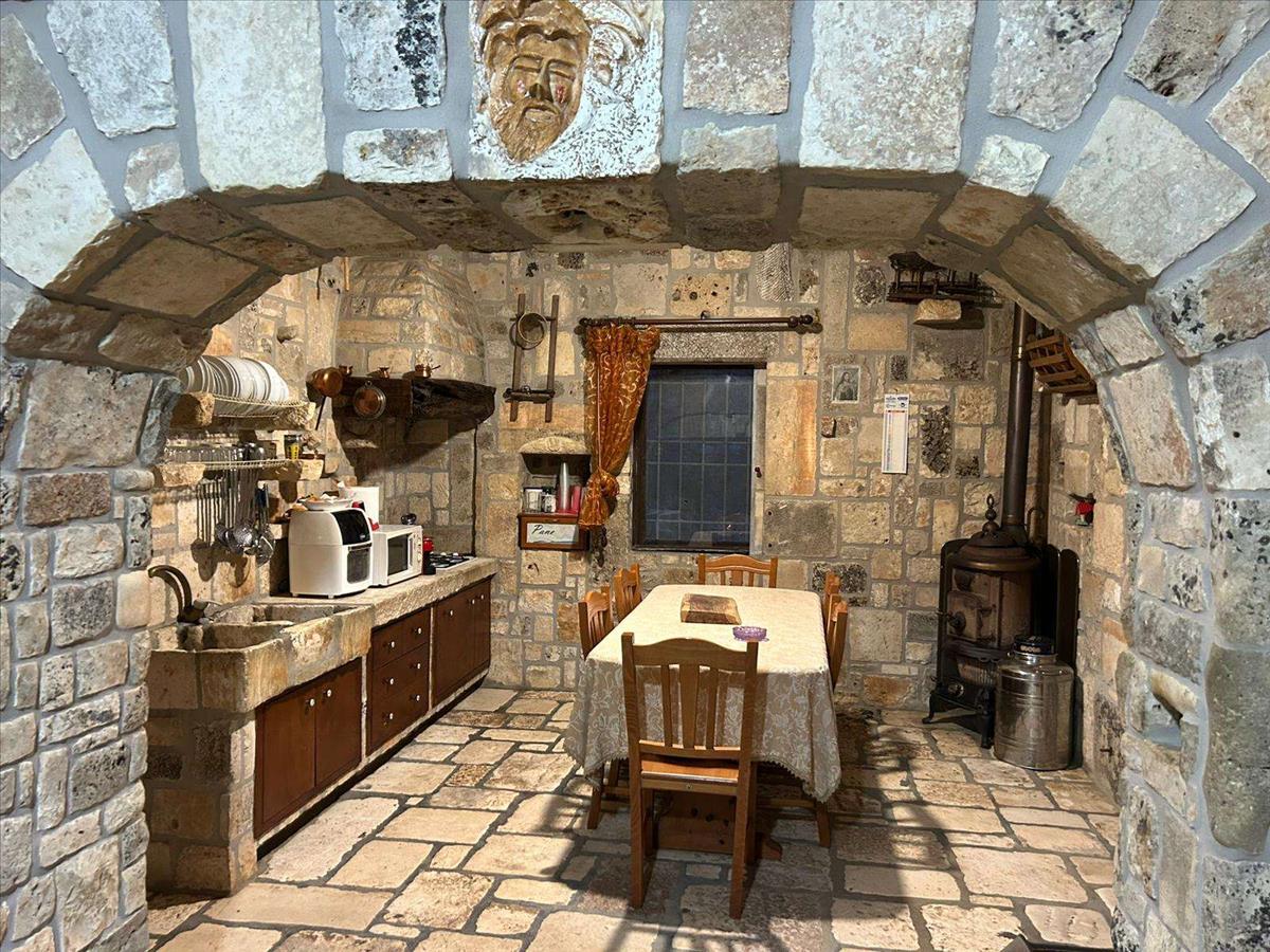 Ez egy igazi kincs: egy festői vidéki otthon, amely megmutatja a nyugodt életet. Ahogy belépsz a főépületbe, meleg és hívogató atmoszférába lépsz, amelyet egy nagy, kényelmes kandalló emel ki. A konyhafülke az étkezőhöz vezet, jellegzetes kőmosóval és gázfőzővel. Innen érkezel a második nappaliba, ahol két hálószoba közös fürdőszobával van. Az elragadó vendégház további hálószobát és fürdőszobát kínál. Külön épületben pedig szabadtéri konyha is rendelkezésre áll. A telek mérete 4 421 m², és érett olajfákkal meg virágmezőkkel övezett, nyugodt oázist teremtve. Az ingatlan előnye, hogy artesian kúttal korlátlan vízellátást biztosít.