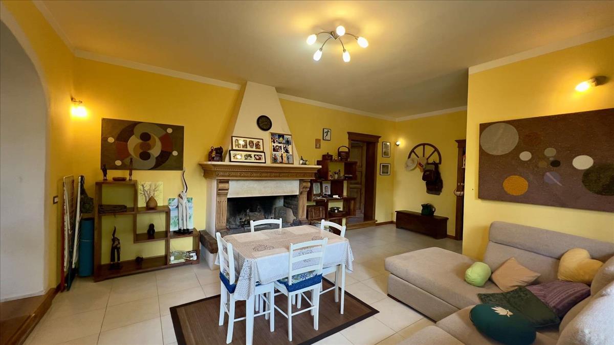Minden szoba világos, nyugtató kilátással a zöld környezetre. A nappali a földszinten található, a három hálószoba a földszinten van, egy pedig az első emeleten; rusztikus stílusú kandallóval és terrakotta padlóval. A fürdőszobákban fa- vagy parketta padló van, a többi helyiségben kerámiapadló és beépített kád vagy zuhanyzó található. Az ablak- és ajtók kerete keményfából készültek, redőnyökkel és szúnyoghálókkal. Fűtés: LPG-gáz vagy pellet tüzelés, radiátorokkal a házban.