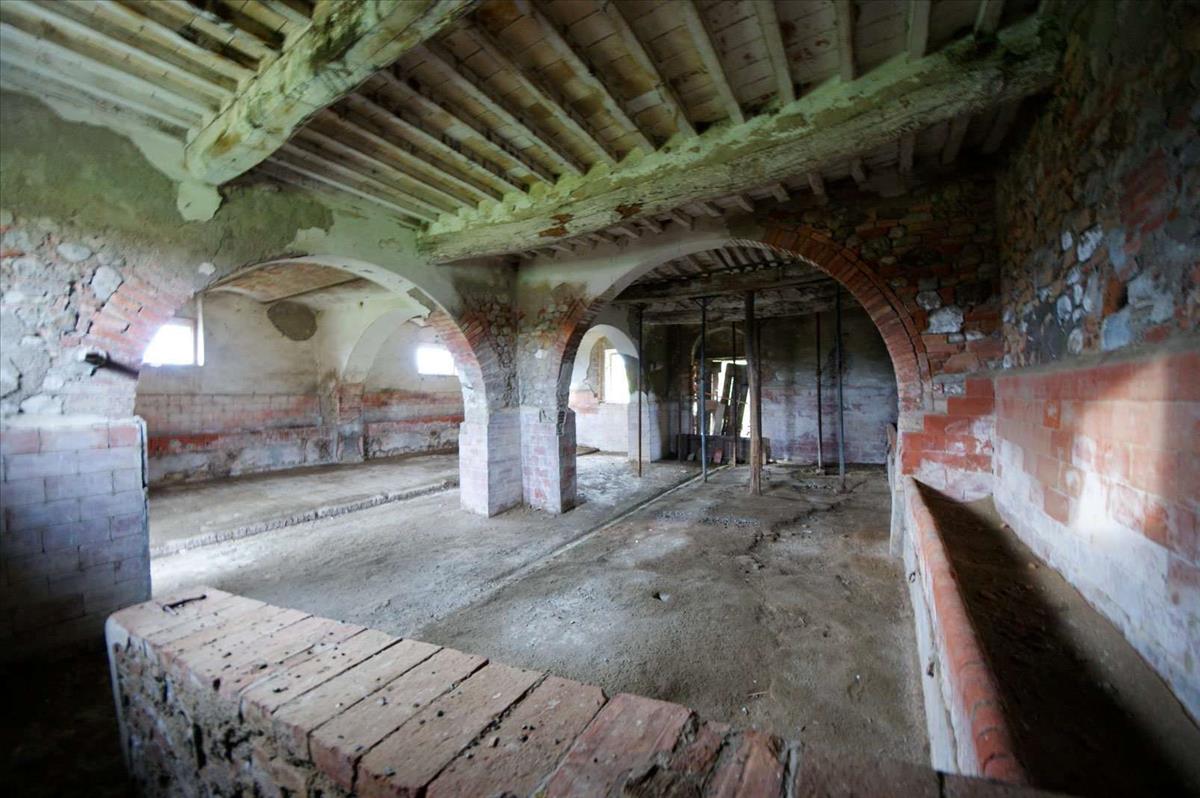 A földszint valóban csodálatos, a régi istállók ma újra használhatóak, mint egy hatalmas nappali, egy nagy nyitott tér az eredeti boltíves mennyezettel.