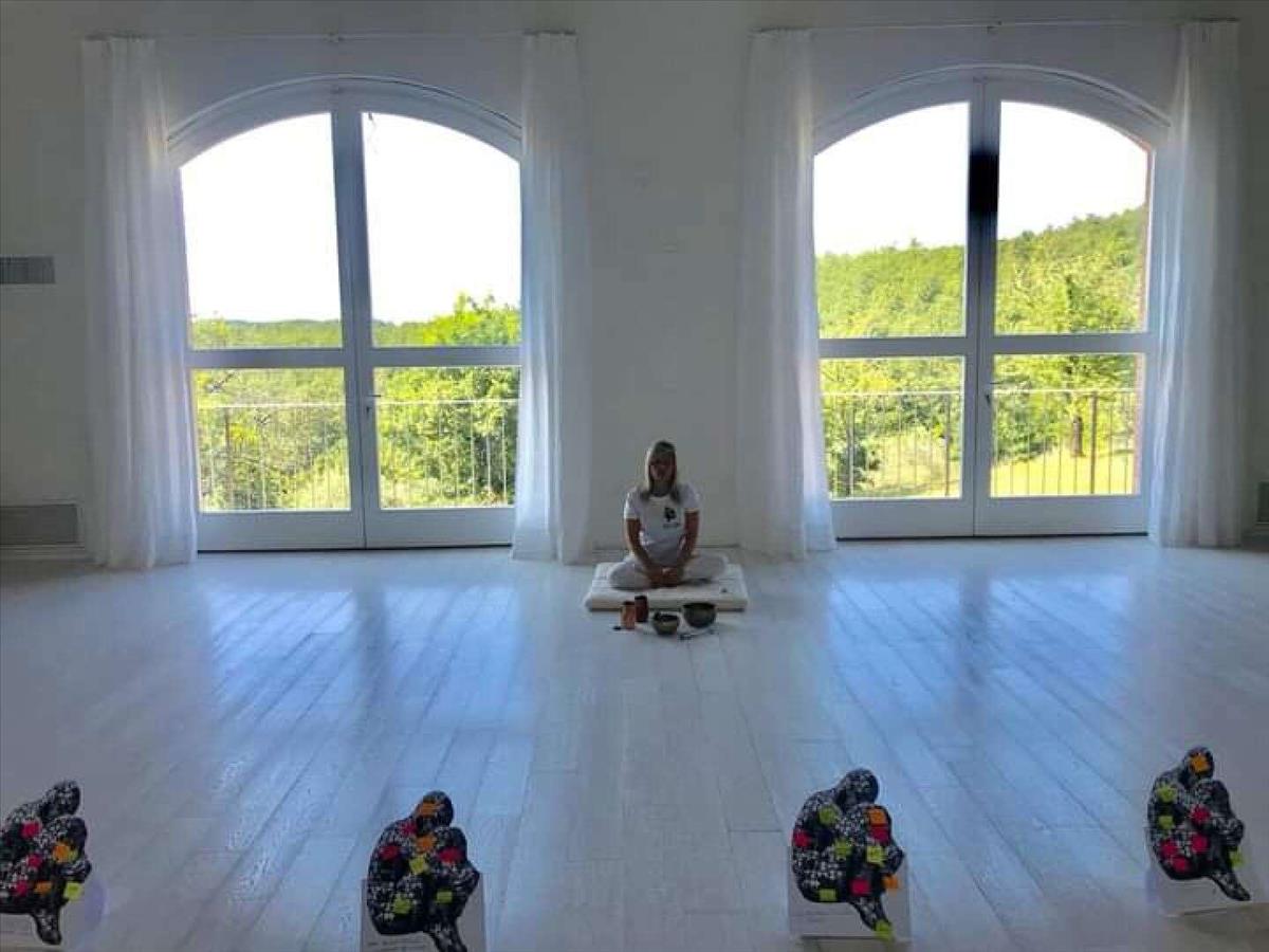 A birtok szívében egy modern tornaterem áll, lenyűgöző 150 m²-es termével, 7 méteres mennyezettel, amely a jóga és a meditáció számára is használható.
