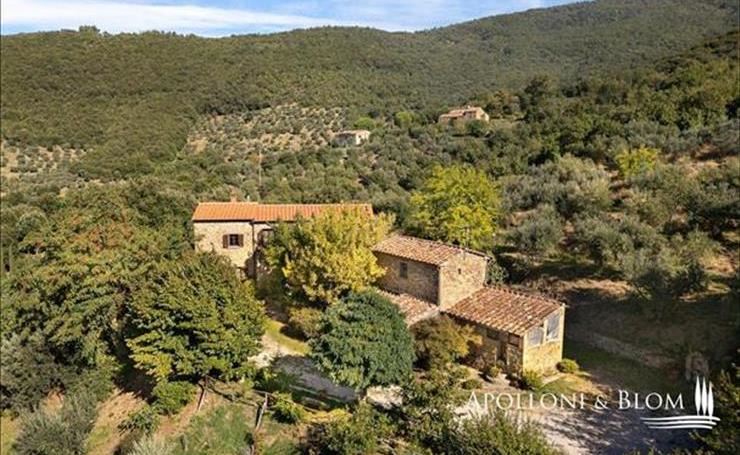 Jellemző 1800-as években épült kőház felújított medencével, házzal, kerttel és olajfaültetvénnyel eladó Cortona, Arezzo.