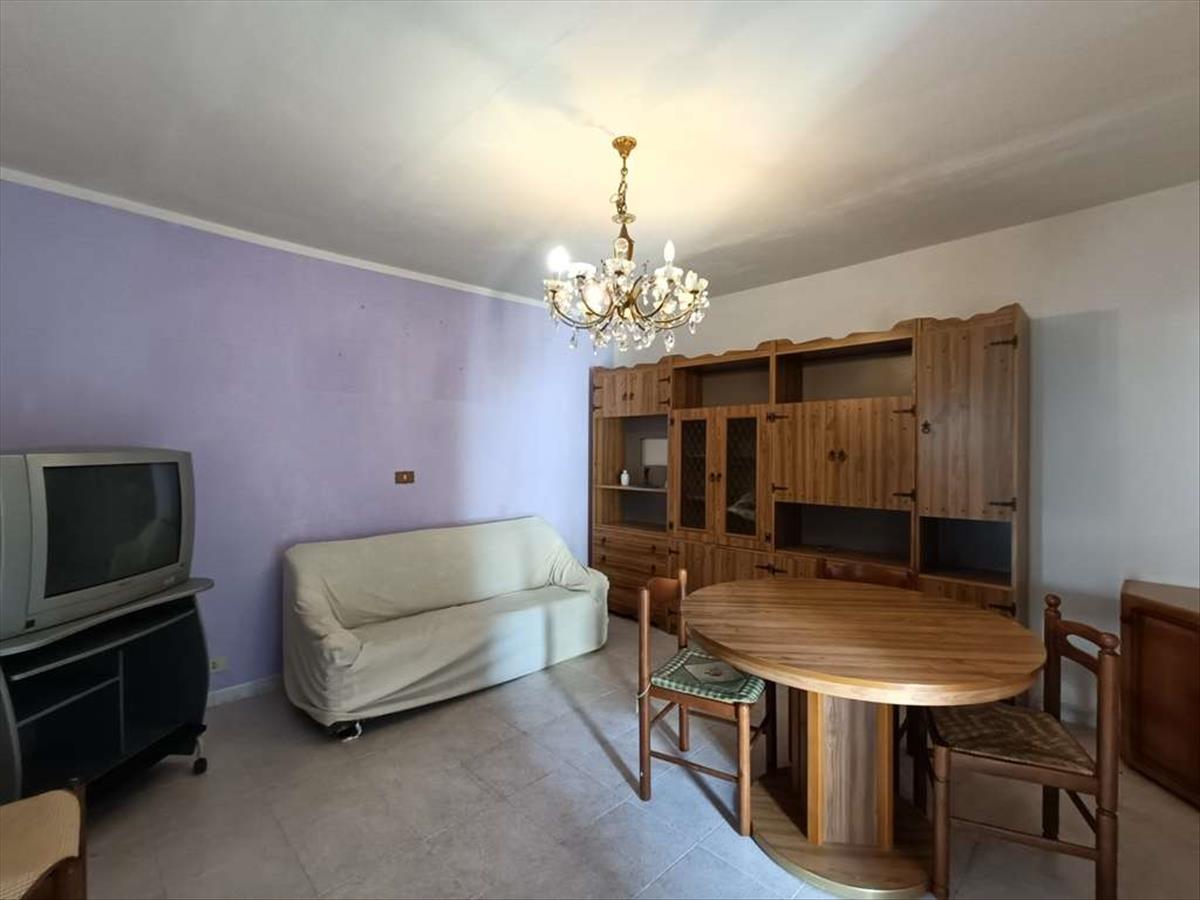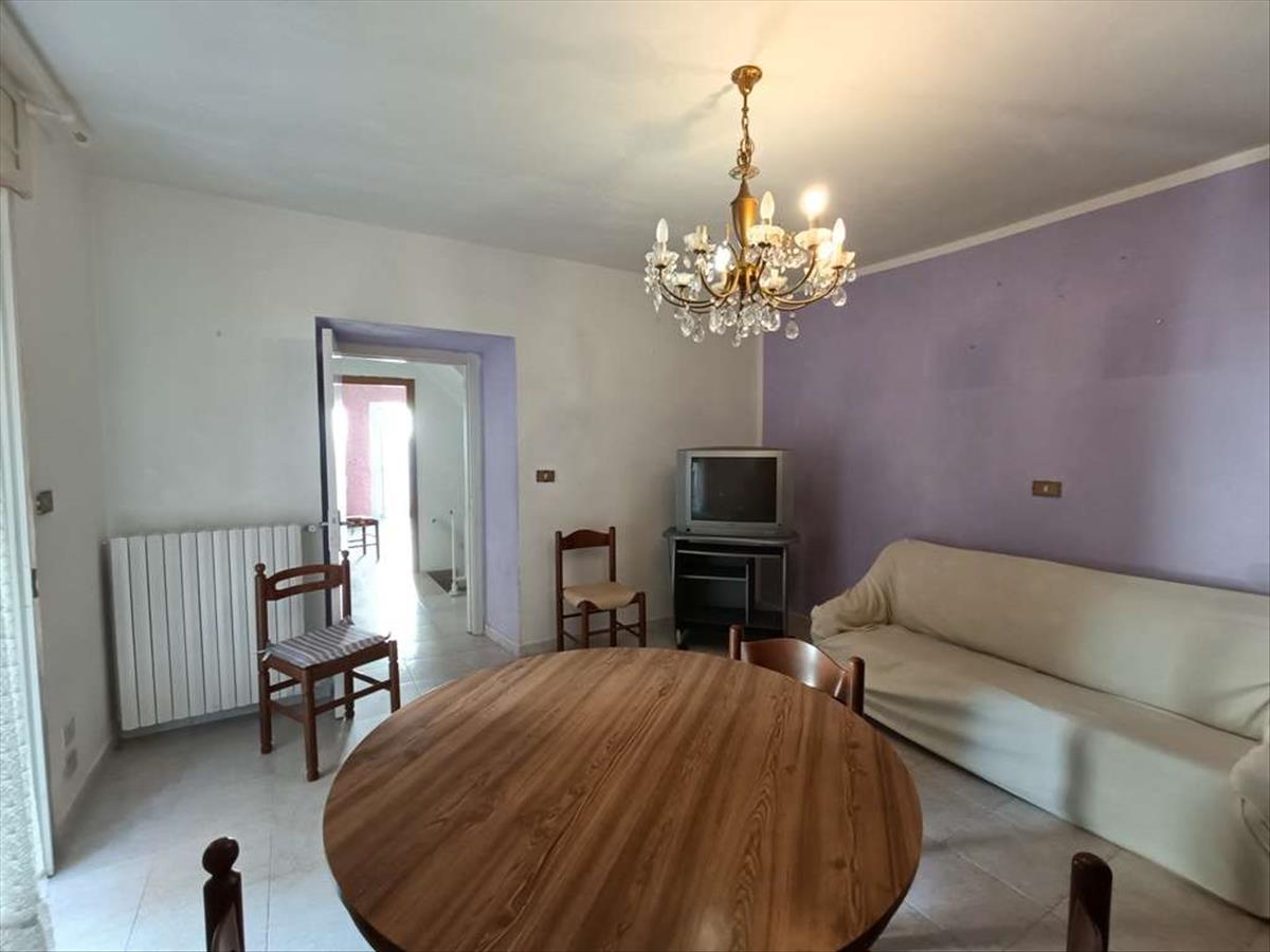 A szép falu Canosa Sannita 15 percre van a tengertől autóval, egy keskeny városi utcában álló félpanziós ház három szinten, külső tárolóval és kis kerttel.