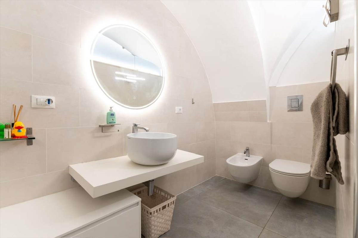 Főbb jellemzők: 150 m² a Centro Storico di Ostuni. 1 Master Bedroom és dedikált iroda, 2 Fürdőszoba, nagy nyitott nappali-konyha. Csillagboltozatos és hordóboltozatos mennyezetek, szauna, gázközponti fűtés és légkondicionálás. Teljeskörű kulcsrakész megoldás. Mesés, kiemelkedő bérleti beruházási lehetőség. A homokos strandoktól 10 km-re, Brindisi repülőterétől pedig 35 km-re található.Elrejtve egy nyugodt utcában Ostuni történelmi központjában, ez az egyedülálló városház lenyűgöző keveréke az ősi bájnak és a modern luxusnak. Csak néhány percre az élénk piactól, híres éttermektől és divatos bároktól, az ingatlan ideális kiindulópont a mesés 'Città Bianca' felfedezéséhez.