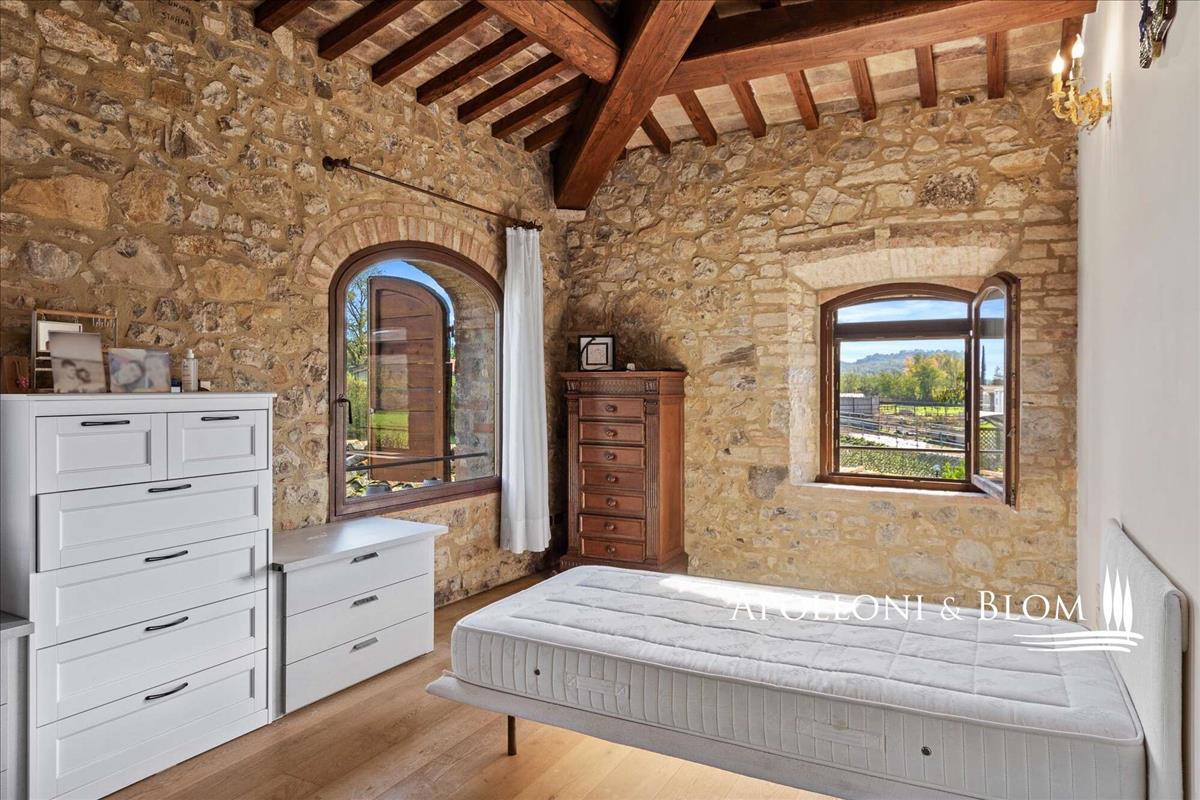 Minden szoba a modern kényelemet ötvözi a történelmi toszkán tanyák jellegzetes elemeivel: nagy tégla ívek, travertin padlók, terrakotta boltozatú mennyezetek és nyílt kőfalak, fából készített gerendák, gáz- és fatüzelésű kandallók, valamint minden szobában klimatizálás.