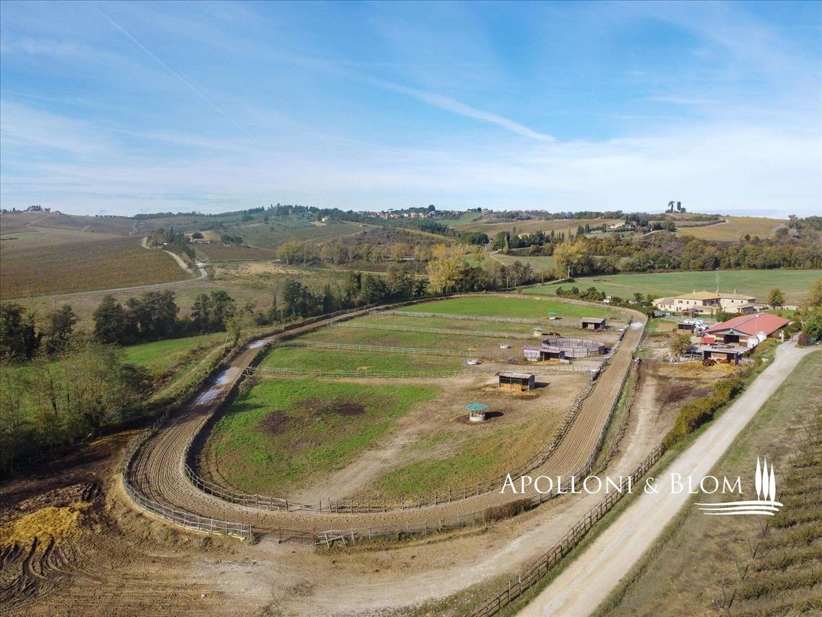 Eredetileg 1000, a Chianti Classico szívében, 15 percre Sienától, ehhez a gyönyörű vidéki házhoz tartozik 3 hektár lóparadicsom és egy lovas központ, amely felszerelt új paddockokkal, istállókkal, 18 boxszal és egy 7 800 m²-es képzési pályával.