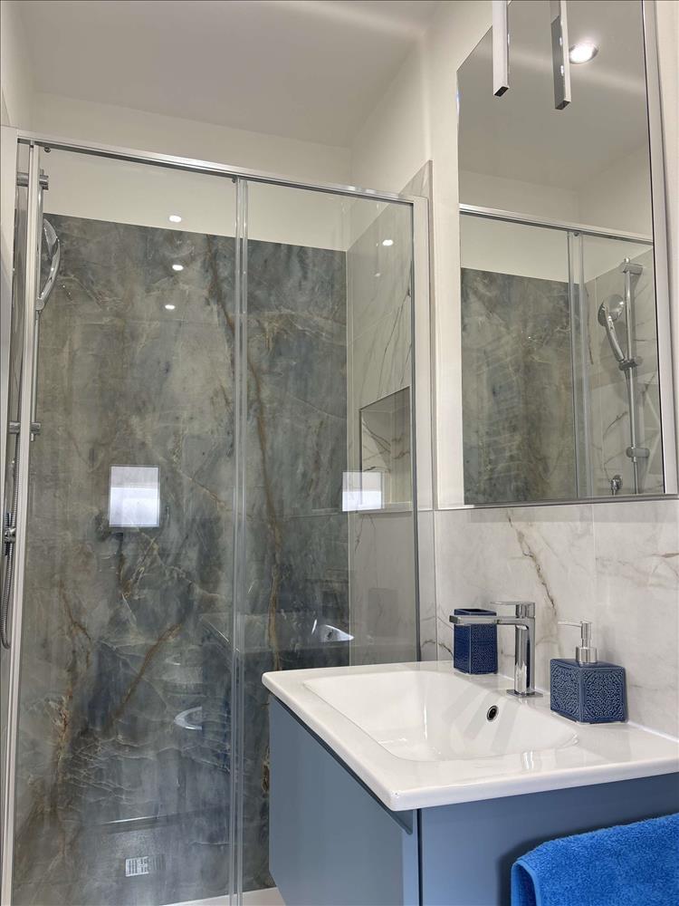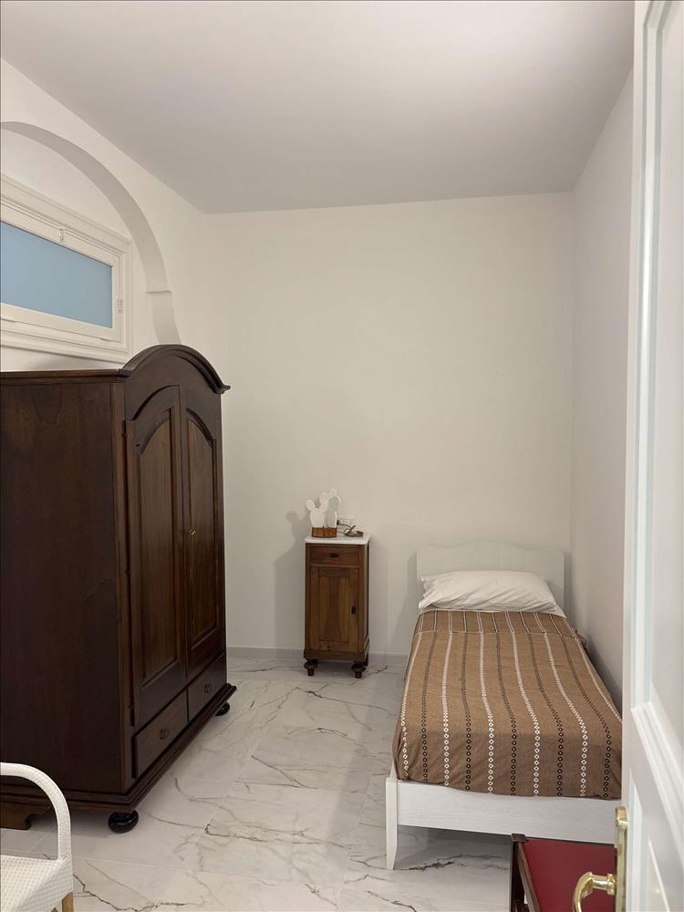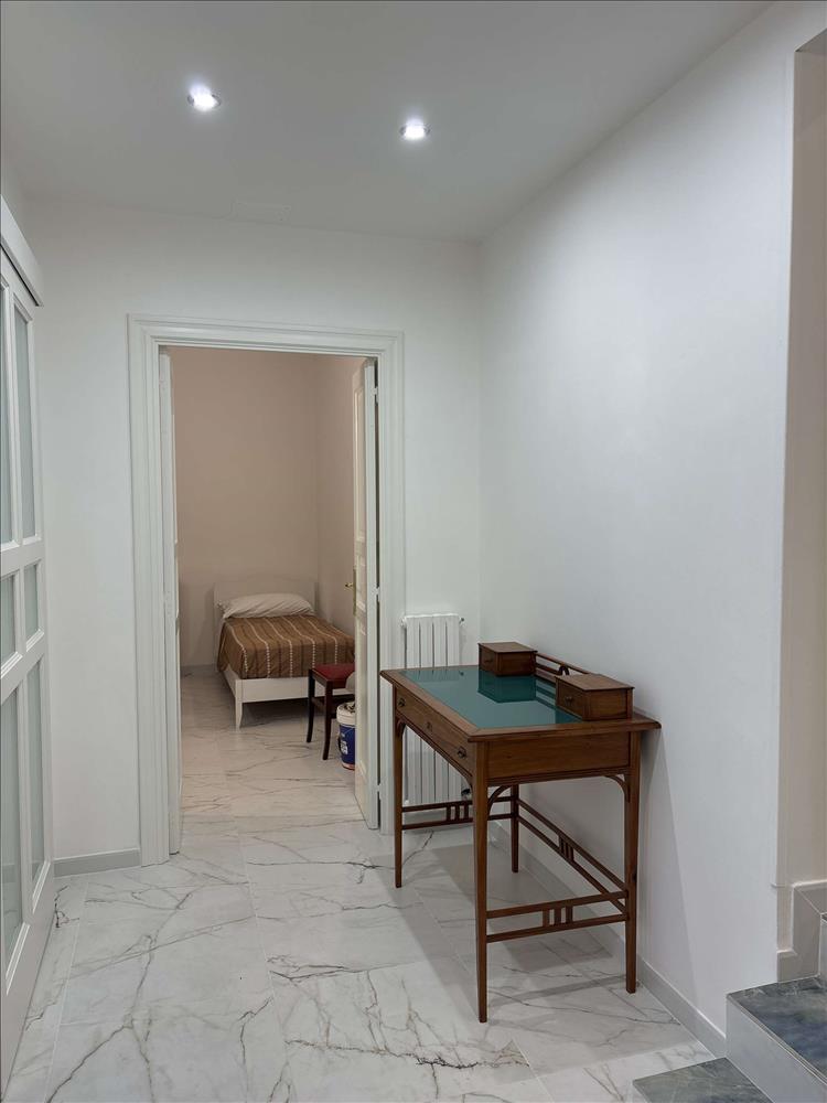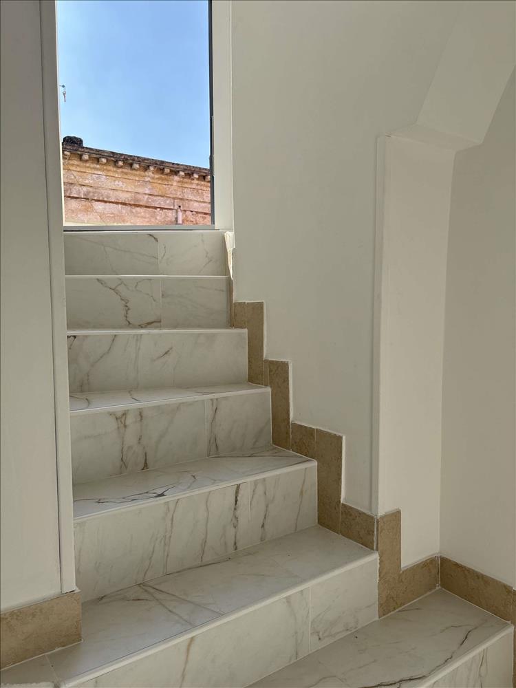 A privát bejárat elegáns lépcsőn visz az első emeletre, ahol a fő hálószoba boltíves mennyezettel és erkéllyel büszkélkedhet, továbbá két egyszemélyes hálószoba, fürdőszoba, valamint egy recepció és nappali – mindegyik erkéllyel.