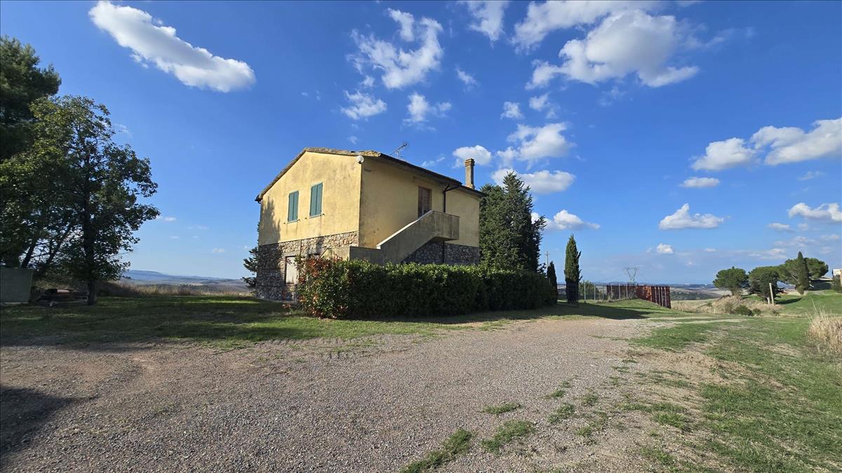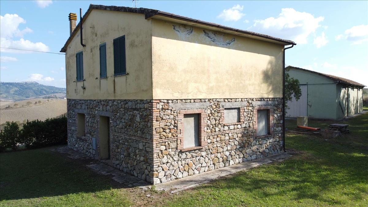A legdominánsabb és panorámás helyen fekvő Lajatico dombjai között 160 m²-es, két emeletes, teljesen felújított farmot és egy 200 m²-es raktárt árulunk, amely egy másik villává alakítható.A ház megközelíthető egy 2 km-es kikövezetlen úton jó körülmények között, és mindössze 10 perc autóval Volterről.