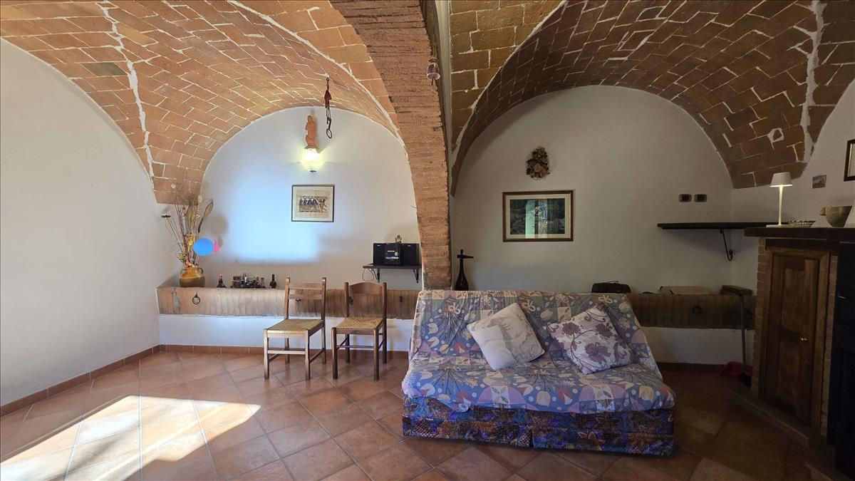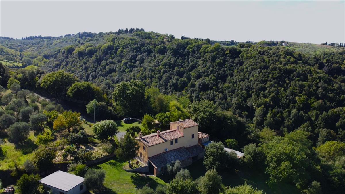 Eredeti parasztházat árulunk a Volterra-dombok között, lenyűgöző panorámával. A ház könnyen megközelíthető egy 2 km-es kikövezetlen úton, jó állapotban, és mindössze 10 perc autóútra Volterra központjától.A birtokon a fő parasztház mellett több külső épület és 6,2 hektár föld található. A parasztház kétszintes, körülbelül 230 m²-es, eredeti fatüzelésű sütővel és 50 m²-es pincével. Földszinten konyha/étkező, egy csodálatos társalgó keresztezett mennyezettel, kandallóval és franciaajtóval a kert felé, továbbá fürdőszoba és tároló található. Belső lépcső vezet az első emeletre, ahol egy második ülőszoba, 2 hálószoba, fürdőszoba és egy tanulmány kap helyet. Végül a lépcső a bájos harmadik emeletre, a toronyba vezet, ahol egy hálószoba sugárzó mennyezettel vár.