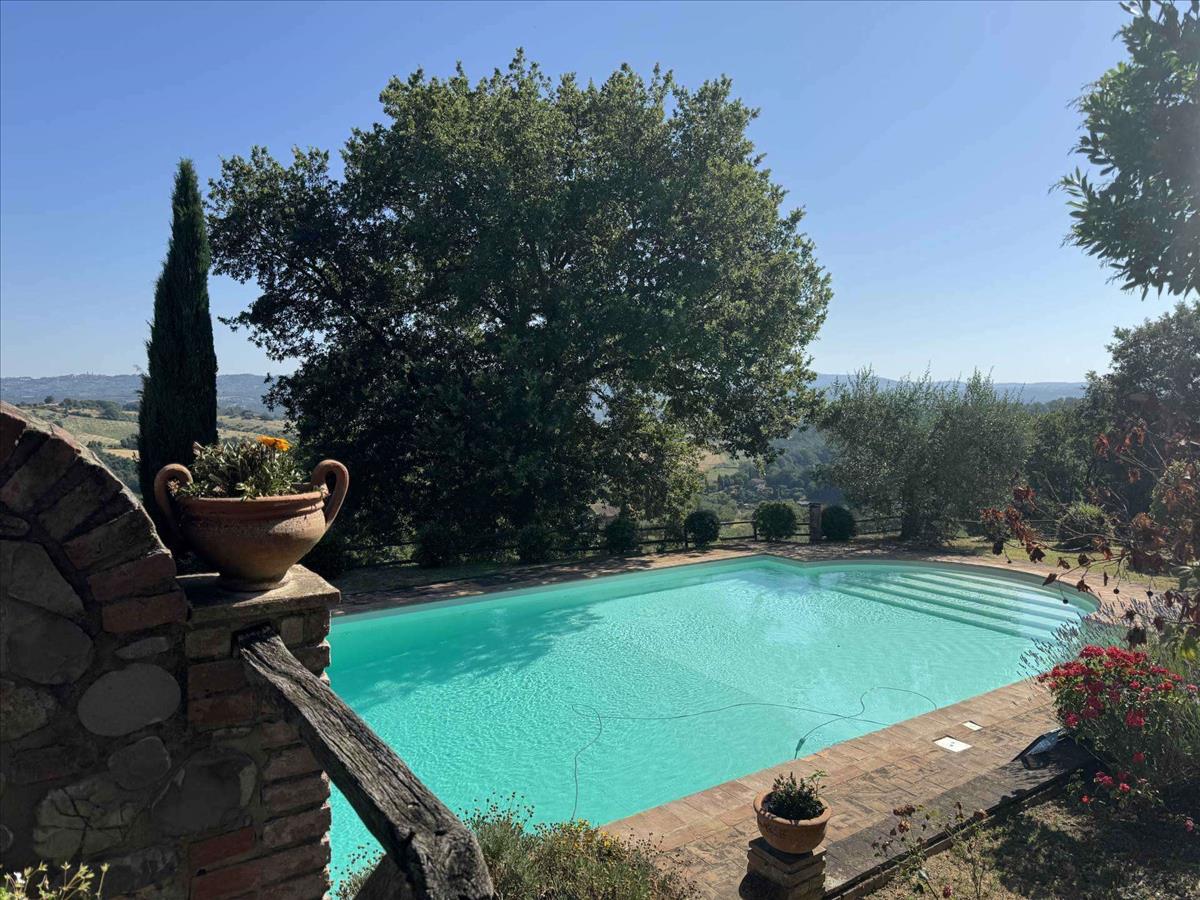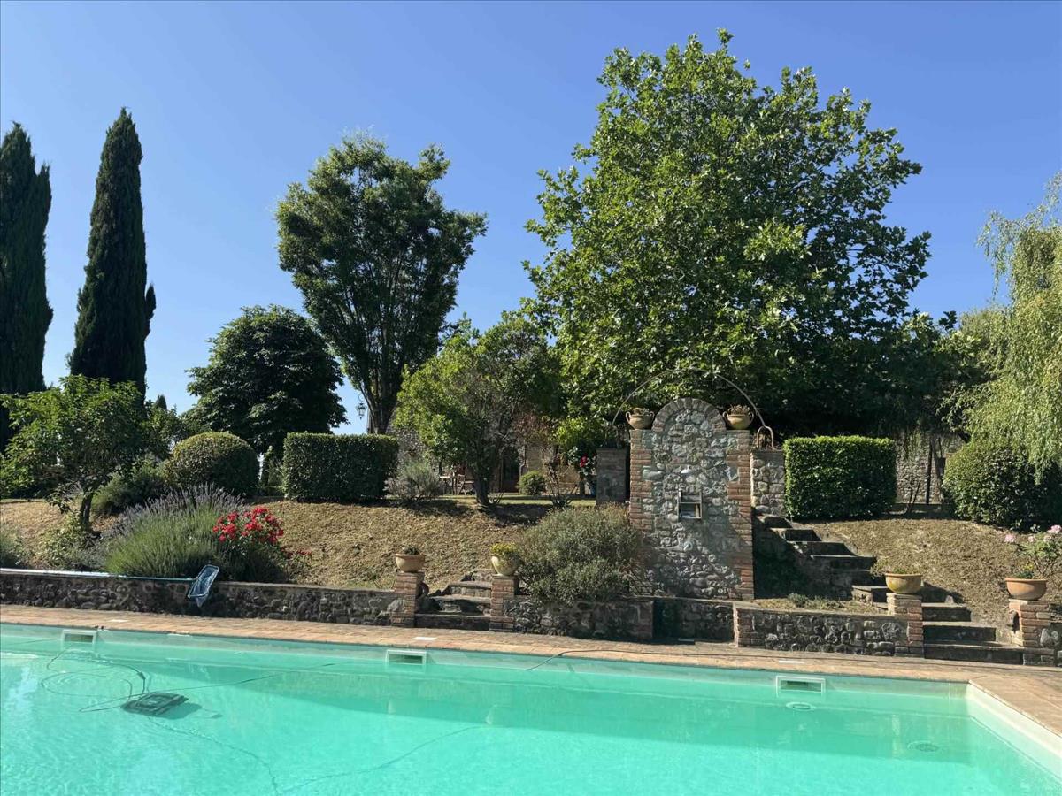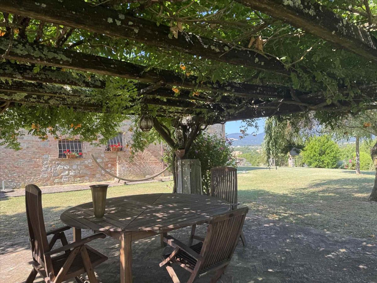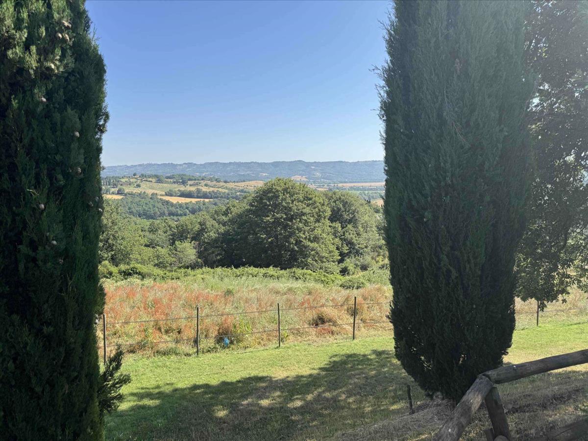 Az Umbria és Toszkána határán, dombos helyzetben található ez a csodálatos kőfarm, amely lélegzetelállító panorámát nyújt, és a vidéket békés zöld környezet veszi körül.