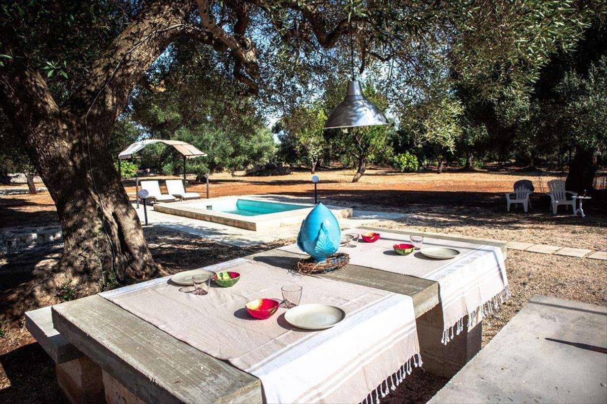 Az ingatlan 5000 m²-es telekkel rendelkezik, mindössze 3 km-re Carovignótól. A környéken 3 km-re találhatók a homokos strandok, Brindisi repülőtere pedig több mint 25 km-re van. Kívül, a trullo körül, 5000 m²-es telek varázslatos ősi olajfákkal. Van egy kis medence, mérete 4 x 2,5 méter, tökéletes a forró nyári napokon. A medence jelenleg víztárolóként funkcionál. Engedély van egy nagyobb medence építésére, 10 méter × 4 méter. Van egy praktikus szabadtéri konyha és szabadtéri asztal, tökéletes hosszú, lusta ebédekhez az olajfák alatt. Van egy szabadtéri zuhanyzó, ideális a strandnap utáni hűsöléshez. Van egy nagy földalatti édesvíz-ciszterna. Van egy régi stílusú szeptikus tartályrendszer.