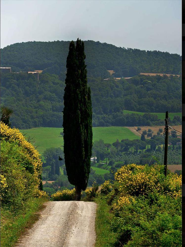 Az ősi Pienza falu közelében van, és az ingatlanhoz vezető út tipikus fehér út, finom kanyarokkal és ciprusfákkal.