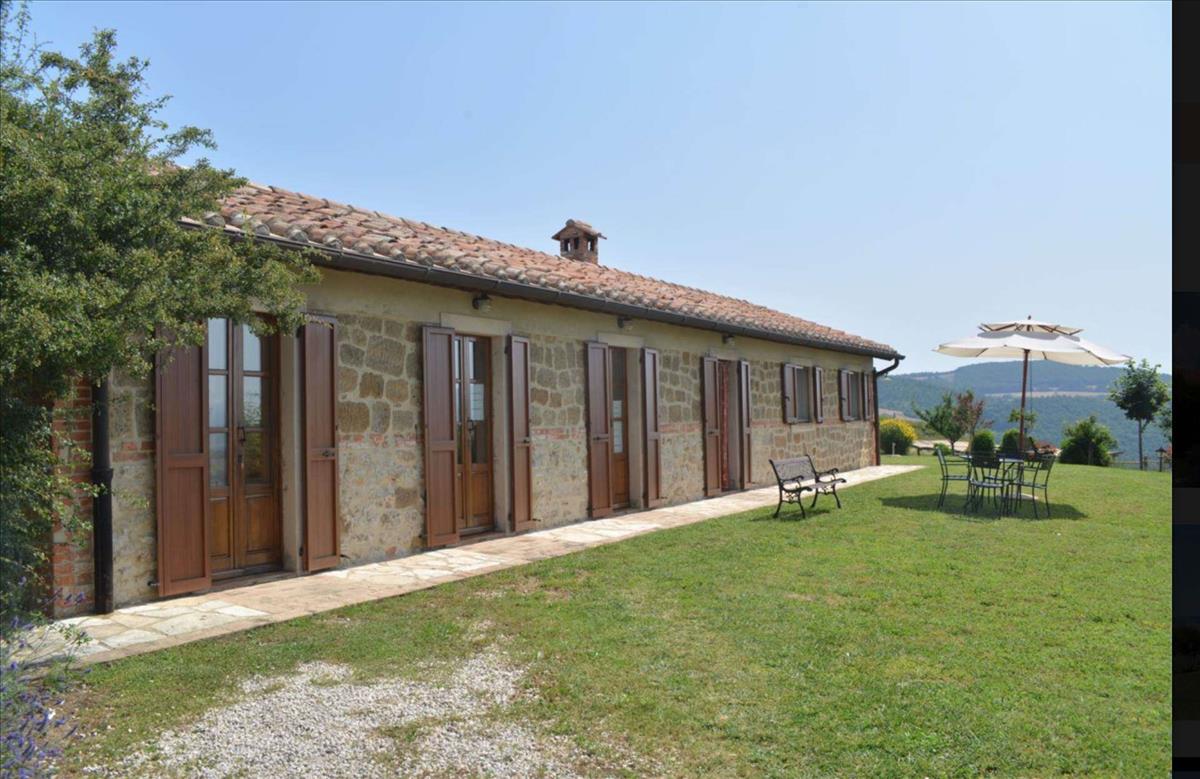 Panorámás vidéki stílusú ház nyitott kilátással Val d'Orcia felé, felújított levegő-kondicionálással, melléképülettel és kerített kerttel, eladó Pienza, Siena.