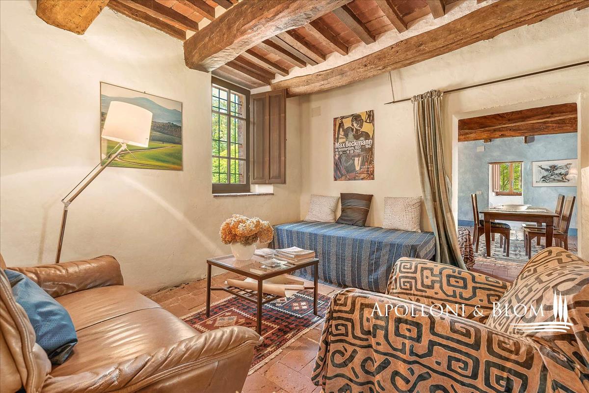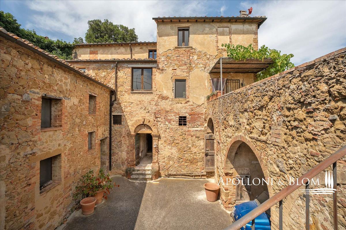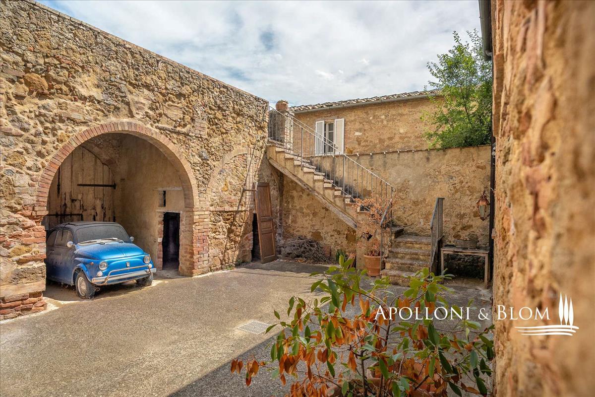 Fedezd fel ezt a festői falut a Sienai vidékén Trequanda közelében: egy bájos, egykori eladó parasztház hagyományos udvarral, terasszal és olajfaültetvénnyel vár rád.Castelmuzio derűs lejtője alatt, a Toszkán vidék szívében, Trequandától mindössze egy rövid sétára, ez a varázslatos félszigetelt parasztház a történelmi vonzerő, az építészeti cselszövés és az alulértékelt elegancia ritka kombinációját kínál.