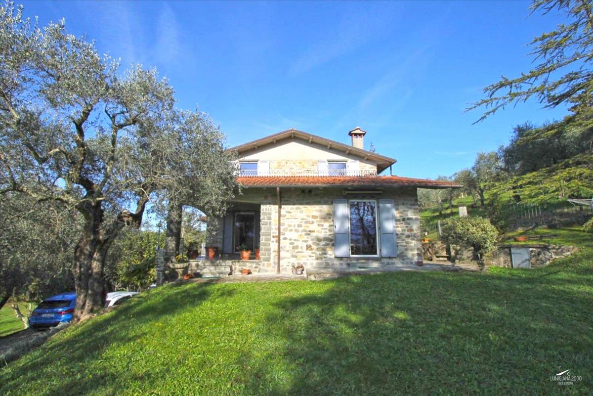 Rendkívüli felújított kőfarm körülbelül 3 hektár földdel (részben olajfaligetek, részben gyümölcsös), egy meghatározott domboldalon és napos helyzetben, mesés kilátás nyílik a völgyre és az Apuan Alpokra.
