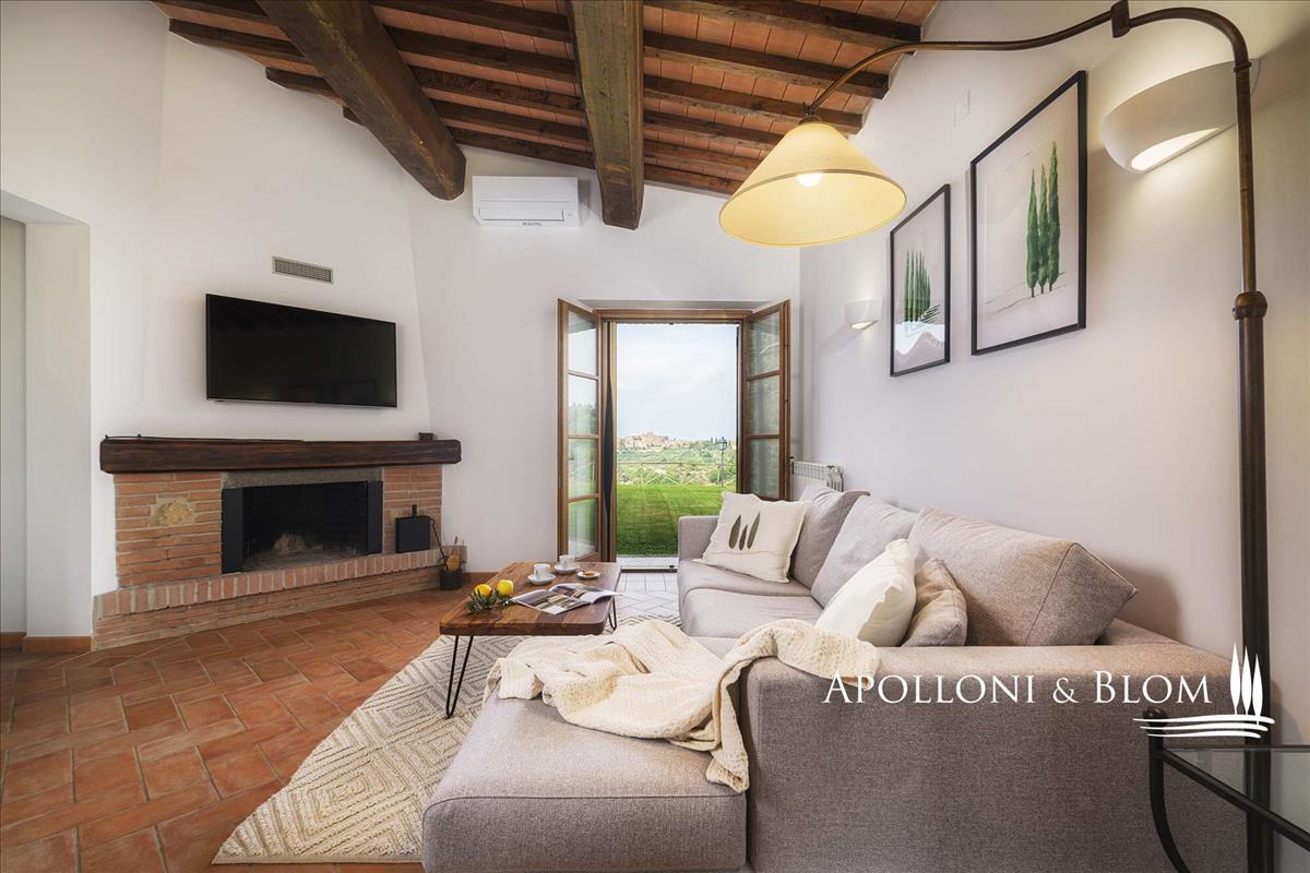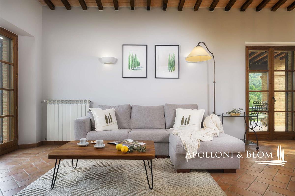 Neked kínálunk egy bájos apartman verandával, kerttel, garázzsal és olajfaültetvénnyel, egy történelmi borgóban Trequanda közelében, Siena. Ez a toszkán vidék nyugalmát és szépségét idézi, és a 100 m²-es földszinti lakás a festői borgó része, amely mindössze kilenc lakóegységből áll.A ház kifogástalan állapotban van, privát kültéri térrel és modern kényelmi megoldásokkal, amelyek a toszkán sárm mellett teszik teljessé az élményt. A belső tér egy szinten van: világos nappali-étkező kandallóval, közvetlen hozzáféréssel egy fedett tornácba (zárt üveggel téli kertet alkotva), egy nyitott konyha központi szigettel, egy fő hálószoba en suite-tel, egy második kétágyas hálószoba, egy családi fürdőszoba káddal és ablakkal, és egy praktikus tároló.
