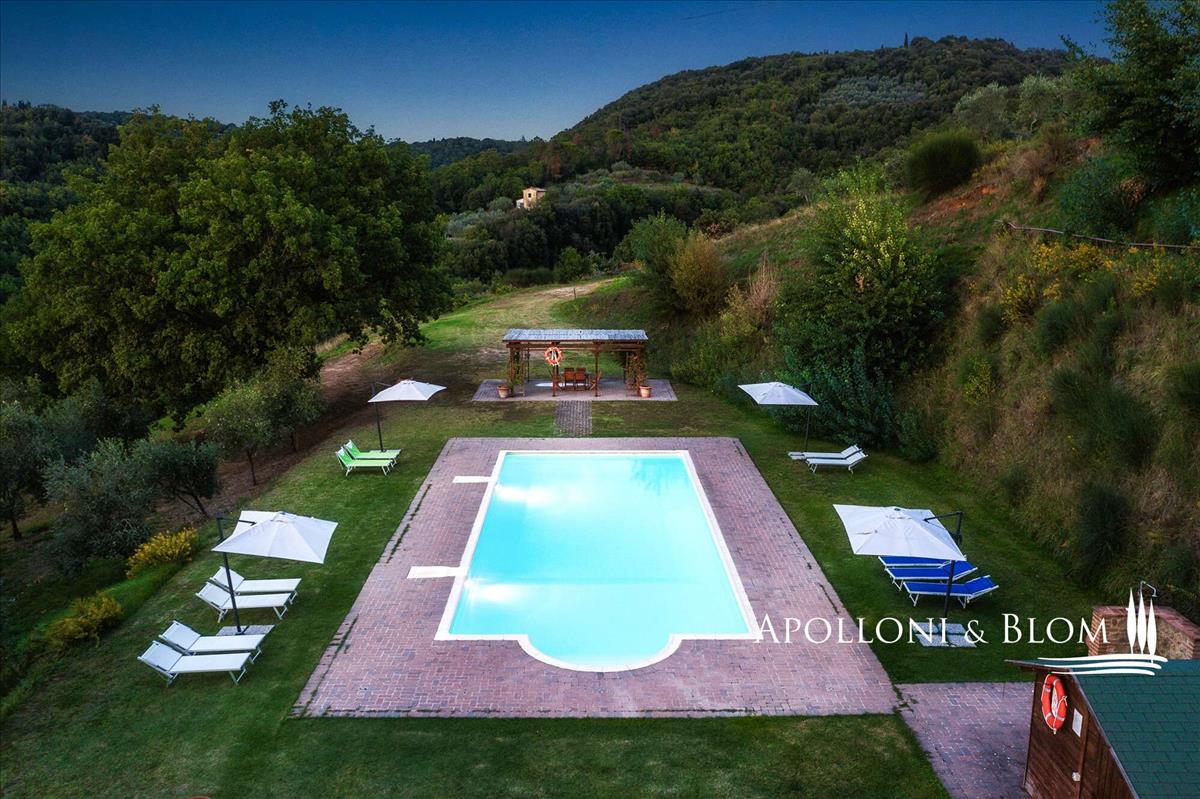 Minden szoba klimatizált, így egész évben kényelmes maradhatsz. Az ingatlan teljesen berendezett, ízléses belső terekkel, amelyek a hagyományos toszkán stílust idézik, és az alagsorban egy tágas garázs, valamint három külső parkoló is a tiéd lehet.