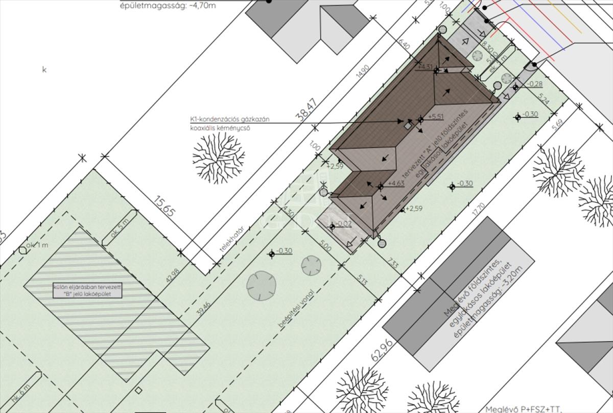 "A" jelű utcafronti ingatlan 469 m2 telken nettó 106, 77 m2 lakótérrel kulcsrakészen 130. 000. 000 Ft