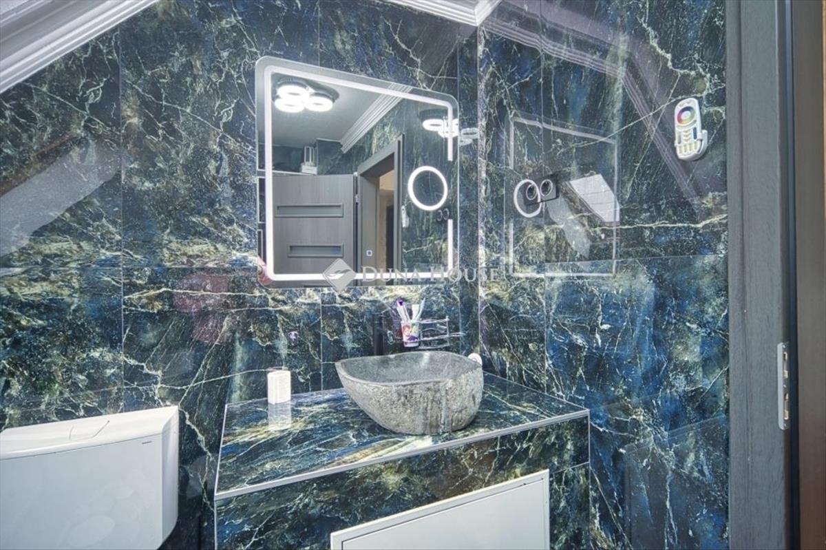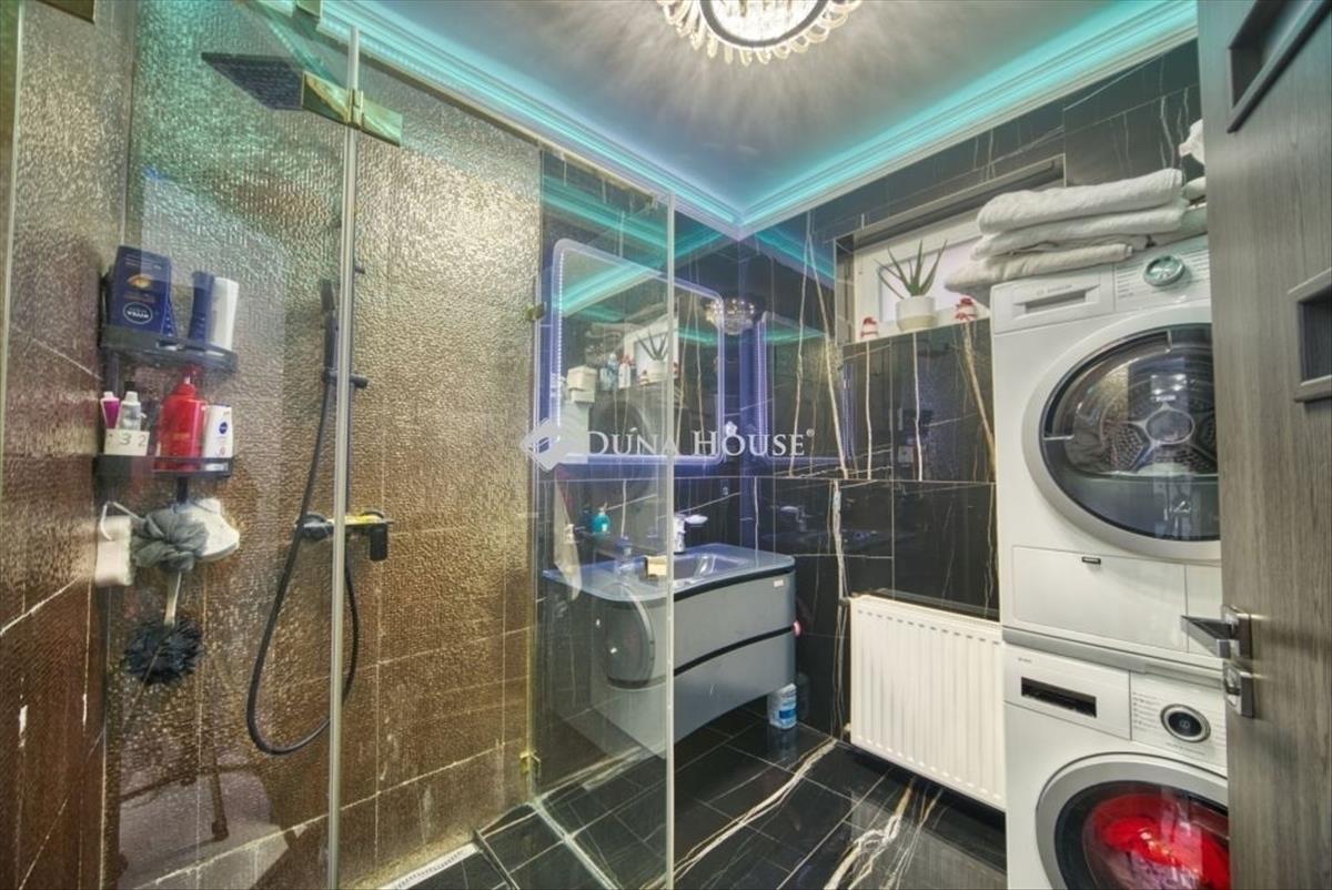 Mindenhol minőségi burkolatok, szaniterek és bútorok kerültek beépítésre, amelyek a gépesített konyhával és a 4 db klímával együtt a vételár részét képezik.