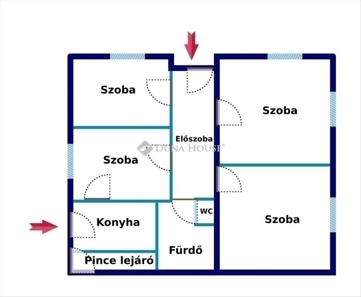 4 világos szoba, 2 kisebb és 2 nagyobb szoba található, nyári konyha, étkező, fürdőszoba zuhanyzóval, külön mellékhelység.