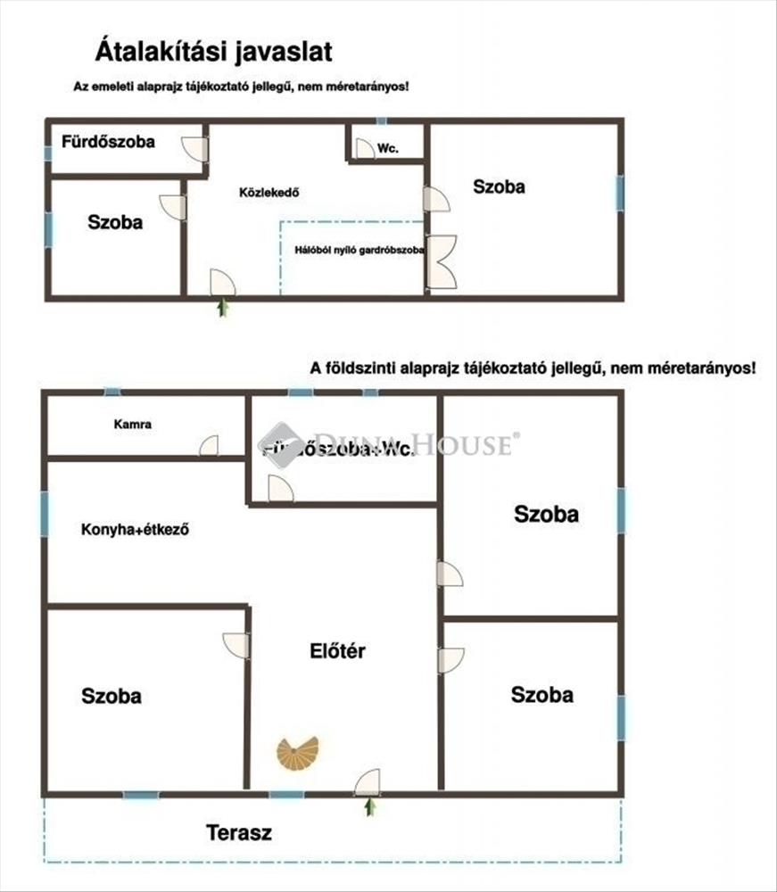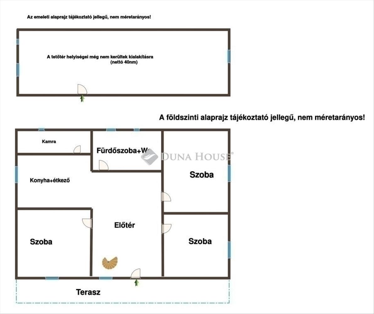 Az emelet (40nm) jelenleg beépítésre van előkészítve, tehát itt a fantázia szabadjára engedhető. További 3 szoba és fürdőszoba kialakítható.