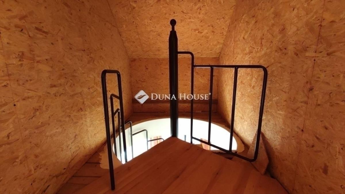 ingatlanon belüli lépcsőtérben kialakított csigalépcső köti össze a szinteket,