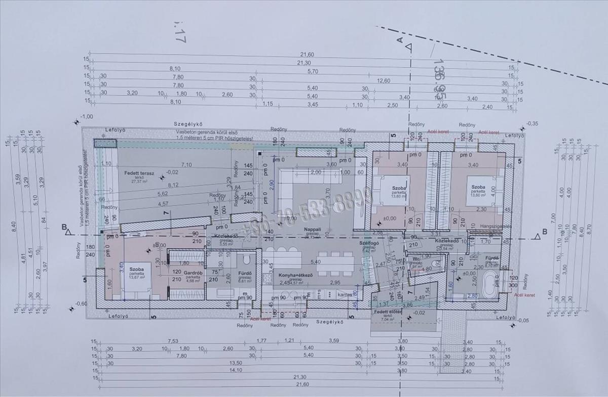 Az ingatlan teljes területe 2400m2, mely területen 2 db önálló családi házanként fekszenek az eladásra kínált kertes házak, egyenként 1100 m2 telek területtel, külön-külön 36 m2-s dupla garázzsal! Az a és B épület egyenként 180 m2 alapterületűek, egyszintesek, külön kerttel melyek öntözőrendszerrel ellátottak valamit terasszal rendelkeznek!