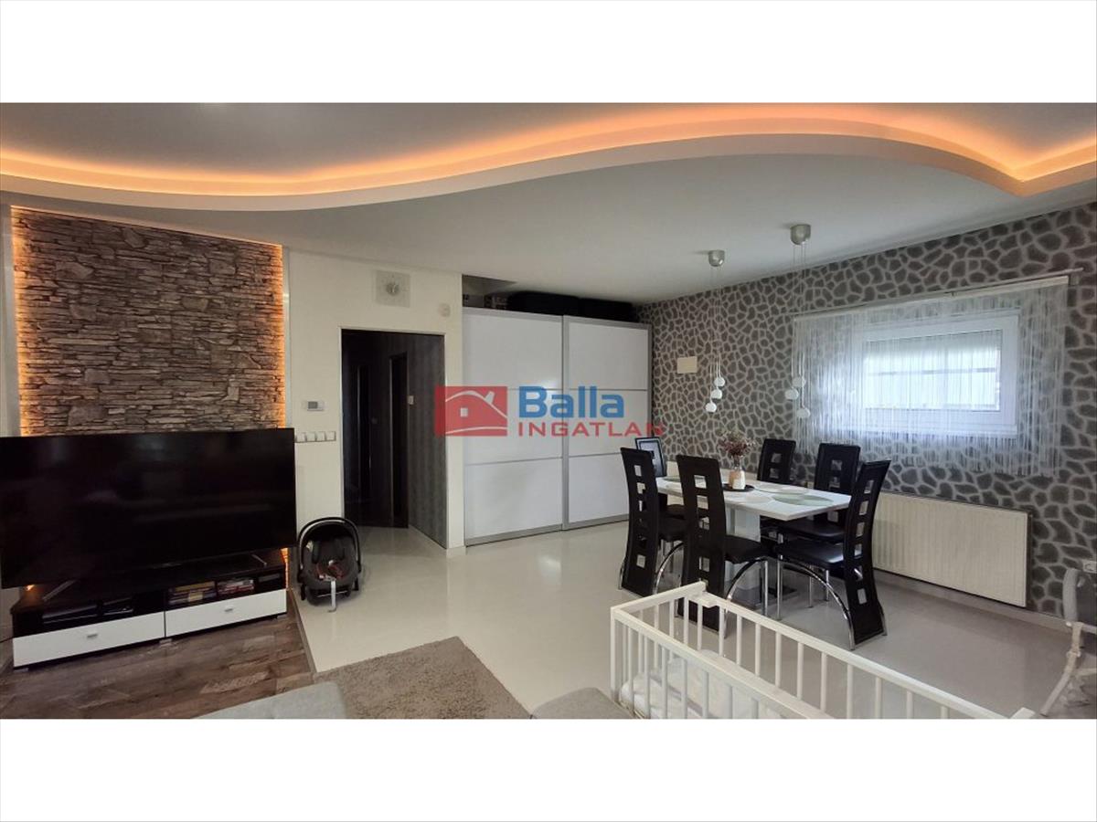 hangulatos, 40 m2 amerikai konyhás nappali, 3 szoba, előszoba, háztartási helyiség, fürdőszoba, 16 m2 fedett terasz, 32 m2 két autó beállására alkalmas garázs.