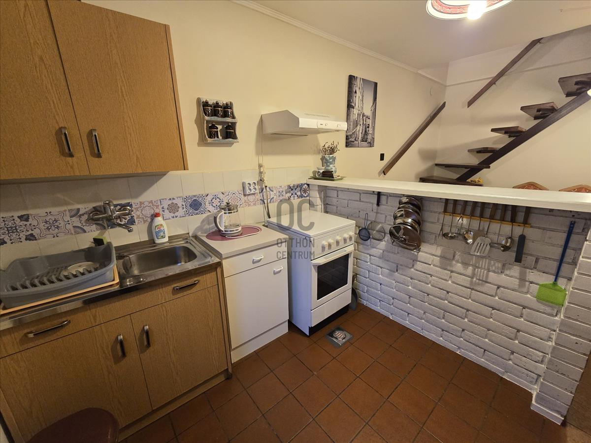 1. Lakrész: Földszint: Nappali, konyha, étkező, kamra, fürdőszoba káddal, hálószoba. emelet: Galéria, 2 hálószoba, fürdőszoba zuhanyzóval, 2 terasz.