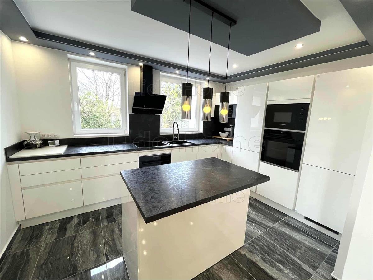 -A családi ház felújítása során 10 cm szigetelést kapott, valamint új külső vakolatot, műanyag nyílászárókat és burkolatokat. Fenti szinten kívül megtörtént a falban lévő csövek cseréje, illetve a riasztó és a kamerarendszer is kialakításra került.