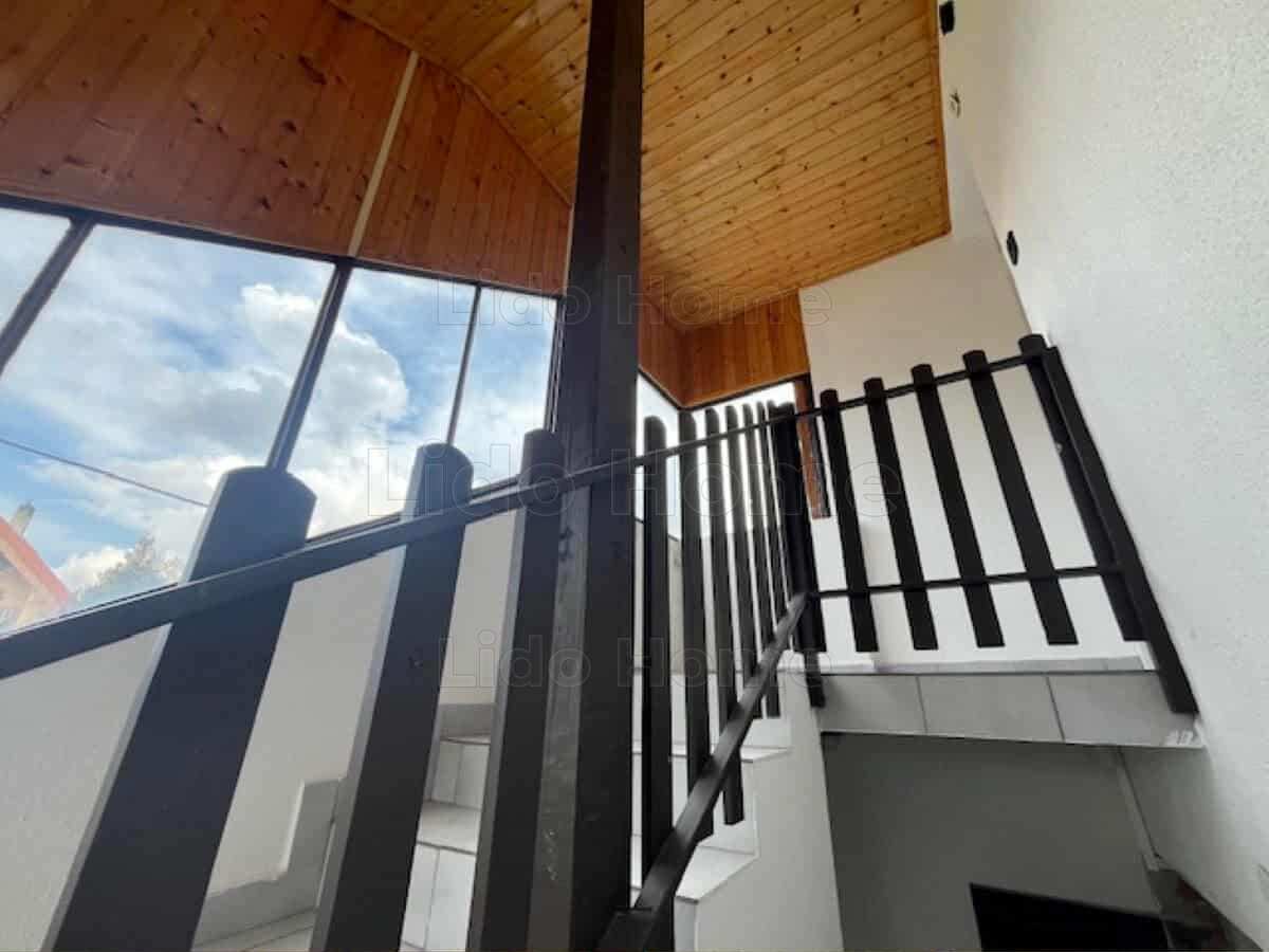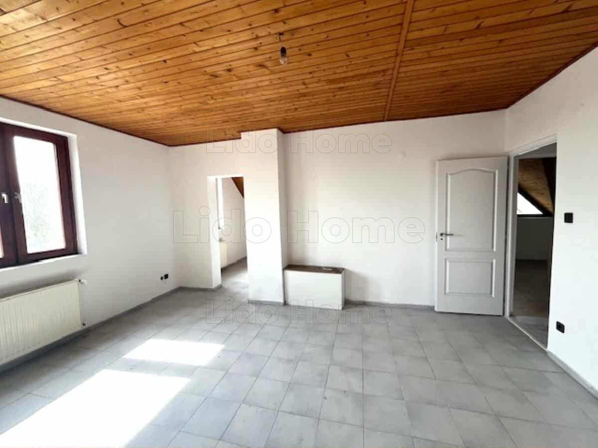 A felső szint lépcsőházból megközelíthető, mely külön bejárat segítségével akár le is zárható. Fent 3 hálószoba, nappali, fürdő, konyha és erkély került kialakításra, viszont a felső szint felújításának befejezése, az új ház tulajdonosára vár.