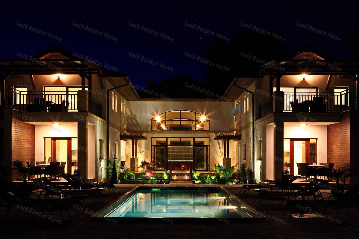 A keleti stílusban épült villa kettő szintes és két egyforma épületszárnyból áll. Belső wellness tér kapcsolja össze az épületszárnyakat. 6 Nappali, 14 hálószoba, 8 fürdőszoba, 6 konyha, teraszok, kényelmes életteret biztosítanak családja számára. Minőségi anyagokból épült ház, mely külső medencével, belső wellness részleggel kínál testi, lelki felüdülést. a villa kertjét különleges növények kompozíciója, kis kerti tó, esti világítás ékesíti.