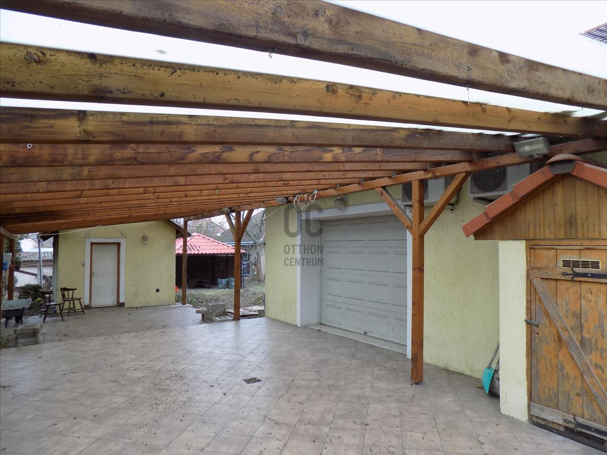 Az utcáról egy távirányítású kapun juthatunk be egy térburkolattal ellátott 50 nm-es! ! , Polkarbonát tetővel fedett részre, innen megközelíthető egy 10 nm-es pince és