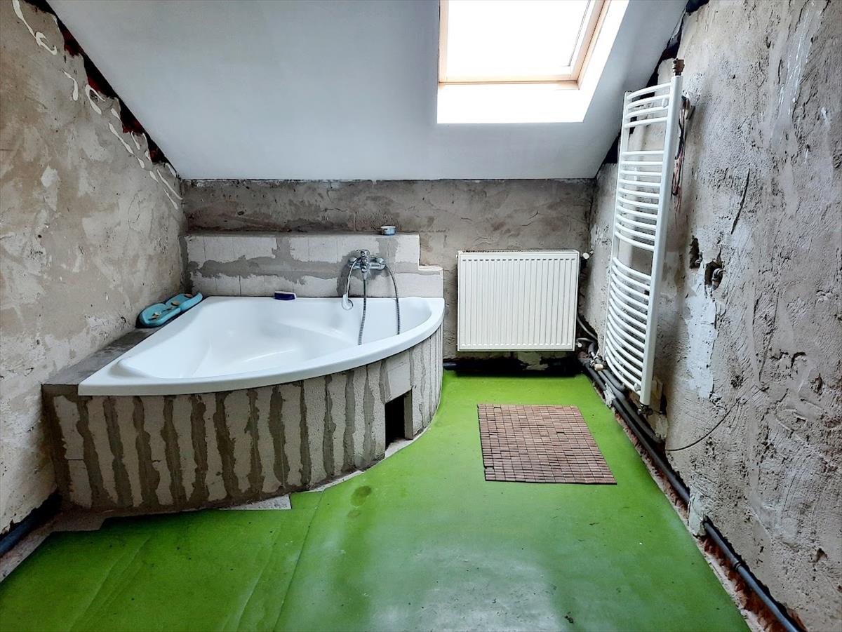 Az emelet felújítása teljes mértékben még nem fejeződött be, hátra van még a glettelés, festés és a burkolás. Ezek befejezése az új tulajdonosra vár.