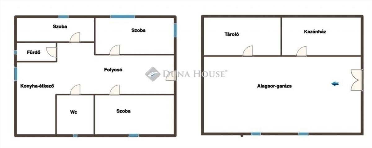 Az alagsorban található a garázs, egy tároló, valamint a kazánház.