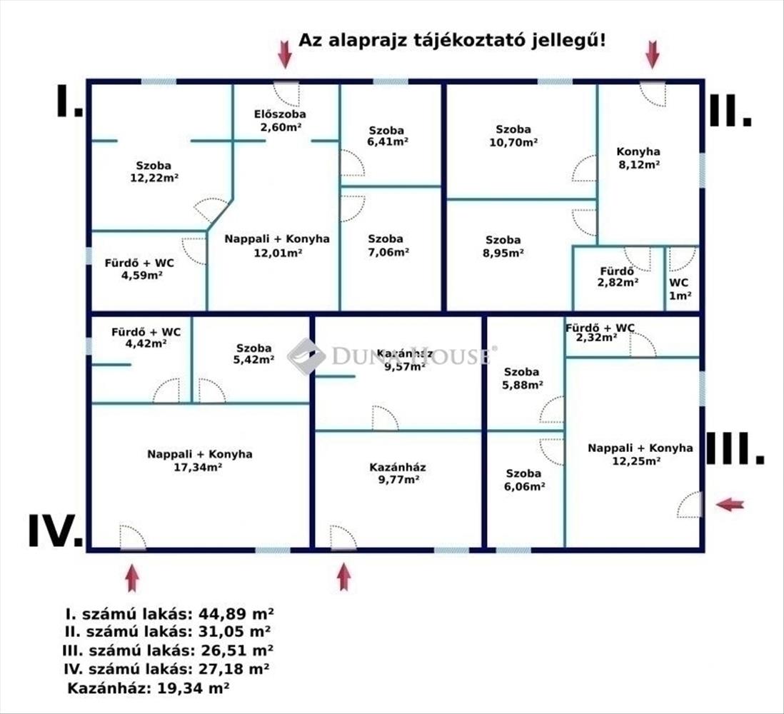 A tetőtér két különálló lakóegységet foglal magában: egy 25 m²-es garzonlakást és egy nagyobb, három hálószobás, amerikai konyhás nappalis lakást. Mindkettő klimatizált, külön bejárattal és terasszal rendelkezik. a földszinti részen további négy lakóegység került kialakításra, saját konyhával, fürdőszobával és klímával, valamint egy különálló, funkcionális kazánház 20 m²-en, zuhanyzóval, toalettel és teakonyhával. Minden lakás önálló bejárattal és saját udvarral rendelkezik, így hosszú távú bérbeadásra is kiváló lehetőséget nyújt. Az ingatlan biztonságáról teljes kamerarendszer és riasztó, kivonuló szolgálattal gondoskodik.