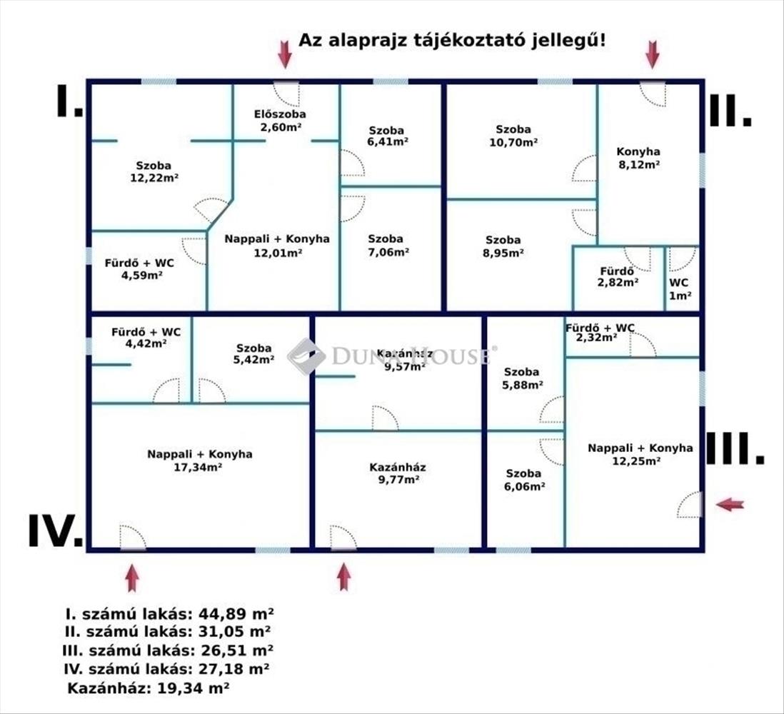 A földszinti részen további 4 lakóegység került kialakításra, saját konyhával, fürdőszobával és klímával, valamint egy különálló, funkcionális kazánház (20 m²) zuhanyzóval, toalettel és teakonyhával.