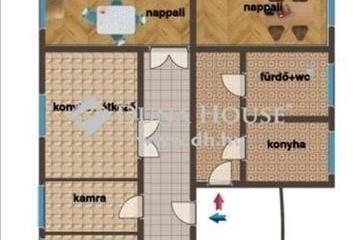 A kisebbik lakásban nappali, egy hálószoba, konyha, fürdőszoba WC-vel és közlekedő található. a ház utolsó felújítása 2020-ban történt, amikor a villanyvezetékeket cserélték ki. a fűtést gáz-cirkó és vegyes tüzelésű kazán biztosítja, a kazán a ház mögötti tégla tárolóban van elhelyezve. a kert hátsó részében gyümölcsfák találhatók, a locsolás pedig ásott kútból történik. Az ingatlan CSOK igénybevételére alkalmas, és könnyen hitelezhető.