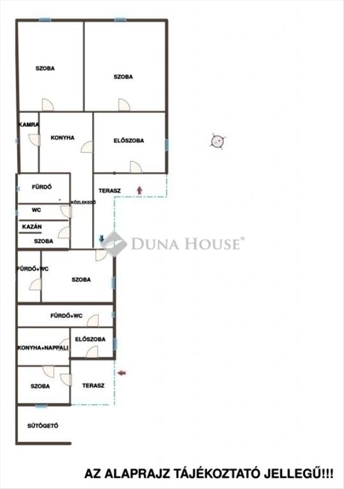 3 önálló lakrész (összesen: 4 szoba, 3 konyha, 3 fürdő, 3 WC)