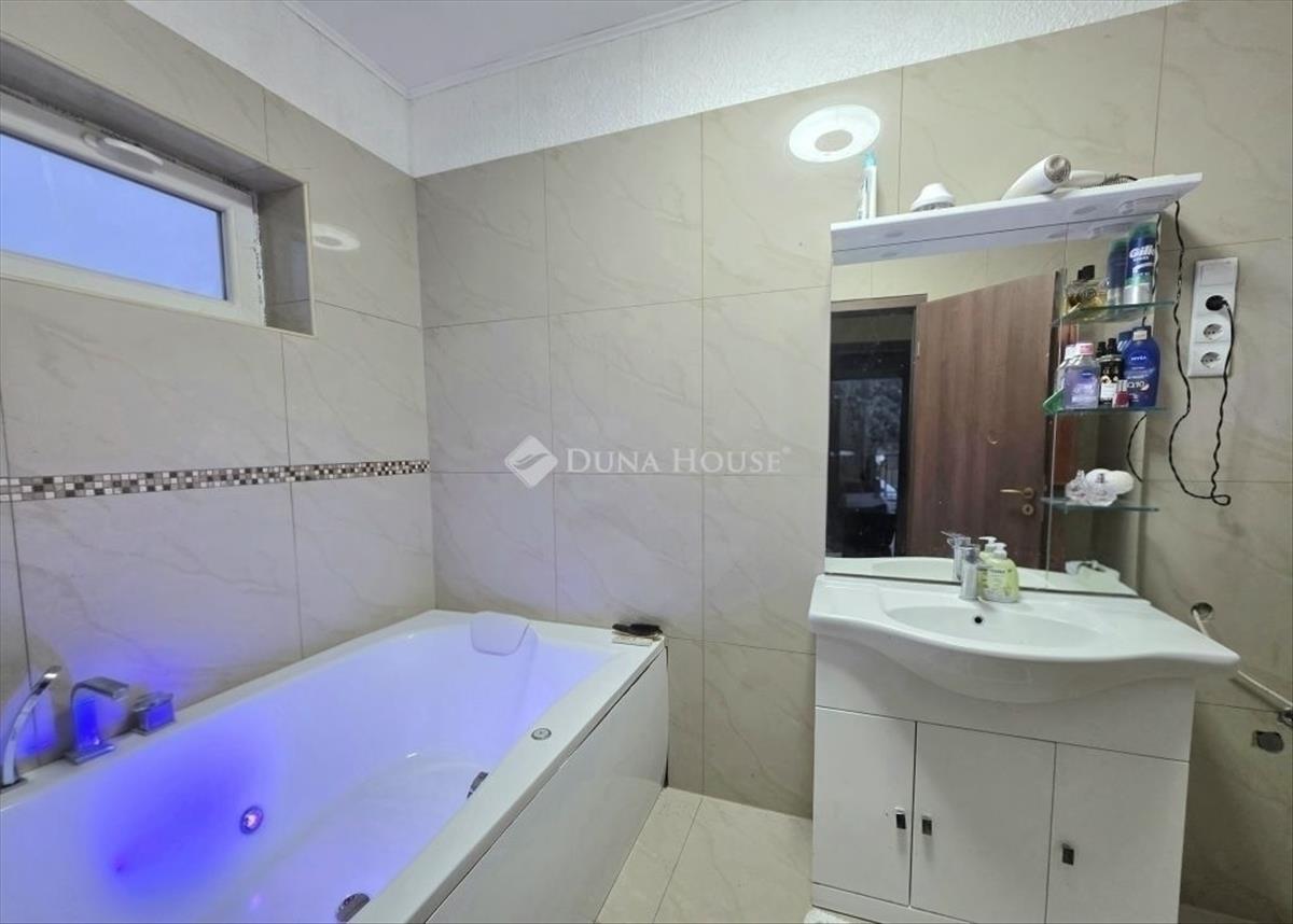 Klotild telepen eladó önálló családi ház, 160 m²-es, több szintes családi ház 40m2-es nyitott terasszal, garázzsal és medencével! Gyömrő csendes, nyugodt részén kínálunk megvételre egy 1993-ban épült, belső szinteltolásos kialakítású családi házat, amely az elmúlt években 2019-től jelentős belső felújításon esett át. Az ingatlan 160 m² lakóterülettel rendelkezik, amelyhez a garázsszinten épületen belül még egy 17 m2-es garázs az amerikai konyhás nappaliból pedig plusz egy 40 m²-es fedett terasz is kapcsolódik, így az élettér még tágasabb és sokoldalúbb. a ház villamos hálózata és vízvezetékrendszere teljes körűen megújult, 3x16 Amperes áramellátással és éjszakai árammal rendelkezik. a fűtést és a melegvíz-ellátást egy 2019-ben telepített gázkazán biztosítja, amely mellett egy 120 literes villanybojler is rendelkezésre áll kiegészítő megoldásként. Az amerikai konyhás nappaliban a radiátoros fűtés mellett elektromos padlófűtés is kialakításra került. a tetőtérben hűtő-fűtő klíma gondoskodik az ideális hőmérsékletről, de a gázfűtés itt is rendelkezésre áll. a nyílászárók műanyagra lettek cserélve, a belső ajtók és burkolatok szintén 2019 után újultak meg. a tetőszerkezet az eredeti, megerősítésekkel. Az épület szigetelése még nem készült el, így az új tulajdonos saját elképzelései szerint fejezheti be az ingatlant. Az elrendezés kifejezetten praktikus és jól szeparálható. a garázsszinten:NappaliFürdőszoba wc-velGarázs található, amely igény esetén további szobává, irodává vagy akár vállalkozási célú helyiséggé alakítható, mivel az élettértől leválasztható. Néhány lépcsőfokkal feljebb:Amerikai konyhás nappali helyezkedik elElőtérTárolóA következő szinten:Két különálló szobaKözlekedő Fürdőszoba, melyben szín terápiás fürdőkád található, ebben wc nem került kialakításraMajd egy további szinten:SzobaKözlekedő Kazánhelyiség (a gázkazán, a villanybojler itt kapott helyet illetve még tároló funkciót is betölt) a tetőtér önálló élettérként is funkcionálhat:NappaliSzoba Fürdőszoba wc-velkerült kialakításra, így akár nagyobb gyermeknek vagy külön lakrészként is ideális. a tetőtéri falak gipszkartonból készültek, tolóajtós megoldásokkal, így az elrendezés könnyen alakítható. Az udvaron működő medence található, a kert pedig kiválóan parkosítható, legyen szó modern, letisztult kialakításról vagy családbarát, zöld környezetről. a 8x5 méteres fedett terasz jelenleg burkolásra vár, így annak végső megjelenését is az új tulajdonos álmodhatja meg. a vételár részét képezi a beépített konyhabútor és a gépek, a tetőtéri ágy, valamint a fürdőszobai bútorok. Ez az ingatlan ideális választás lehet nagycsaládosok számára, több generáció együttélésére, vagy akár otthoni munkavégzéshez is, a tér és az adottságok számos lehetőséget kínálnak. További információért és megtekintésért keressen bizalommal!