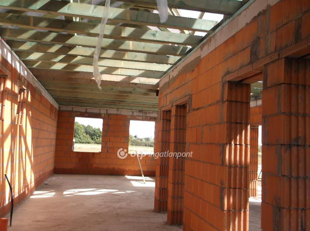Már állnak a falak és készül a tető! Heves vármegye, Gyöngyöstől 3 km-re, Budapesttől 80 km-re fekvő, dinamikusan fejlődő Gyöngyöshalász déli kertvárosi lakóövezetében (új osztású, jelenleg kialakuló) kínálok eladásra új, tégla-és szilikát (válaszfalak) építésű, 99 m2, földszintes, 3+1 szoba + amerikai-konyhás nappali elosztású családi házat 800 m2 telken, 14, 5 m2 terasszal és az udvaron autó beállási lehetőséggel. Ha már most lefoglalja, garantáltan ezen az áron kapja meg! Építkezés befejezésének várható ideje legkésőbb 2026. 08. Hó. a bejáraton keresztül egy előtérbe jutunk. Ebből nyílik a közös légtérbe lévő nappali-étkező-konyha és egy közlekedő. a közlekedőből nyílik három egész és 1 félszoba, egy fürdőszoba, wc, kamra és a gépészeti helyiség. a tetőszerkezet kontyolt nyeregtető, gomba és lángmentesített fűrészelt fenyőből, 25 cm-es ásványgyapot szigeteléssel és párazáró fóliával. Héjazata antracit égetett cserép. Külső falai 15 cm-es szigetelést kapnak. a nyílászárók műa. Hőszigeteltek, belső ajtók mdf szerkezetű, kazettás, üvegezett kivitelűek. a szobákat és az étkezőt laminált padló, a többi helyiséget járólap (gresslap) borítja. Víz - csatorna és villany telken belül, gáz nincs. a fűtésről és a meleg vízről hőszivattyú gondoskodik (padlófűtés). a műszaki tartalmak, hideg - és melegburkolatok, elektromos kiépítések és tartozékok, klíma beszerelés, külső tereprendezés. . . . . . . Választhatóak -költségegyeztetéssel- a munkálatok megkezdéséig. a fürdőszobában zuhanyfülke, de kérés esetén kád is választható. Az építkezés folyamatáról újabb fotókat töltök fel. Csendes, nyugodt, kertvárosias, családi házas épületekkel beépítésre kerülő utcában helyezkedik el, jó szomszédok társaságában. Ha felkeltette érdeklődését hívjon, további műszaki adatokkal szolgálok. Személyautóval és autóbusszal egyaránt jól megközelíthető, közvetlen helyi járattal Gyöngyösre és helyközi járatokkal a nagyobb városokba. a településen óvoda, iskola, piac, posta, orvosi rendelő, fogászat, gyógyszertár, horgásztó, művelődési ház állandó programokkal, könyvtár, pizzéria. a közelben számtalan munkalehetőség a Pipis-hegyen, Gyöngyösön az ipari parkban, Gyöngyöshalászon és Adács mellett. Ingatlanirodánk ügyvédi háttérrel, csok, babaváró hitel, Otthon Start Hitelprogram, valamint kamatkedvezményes hitel ügyintézésével támogatja ügyfelei ingatlanvásárlását. Ingyenes banki segítség! Hívjon bizalommal!