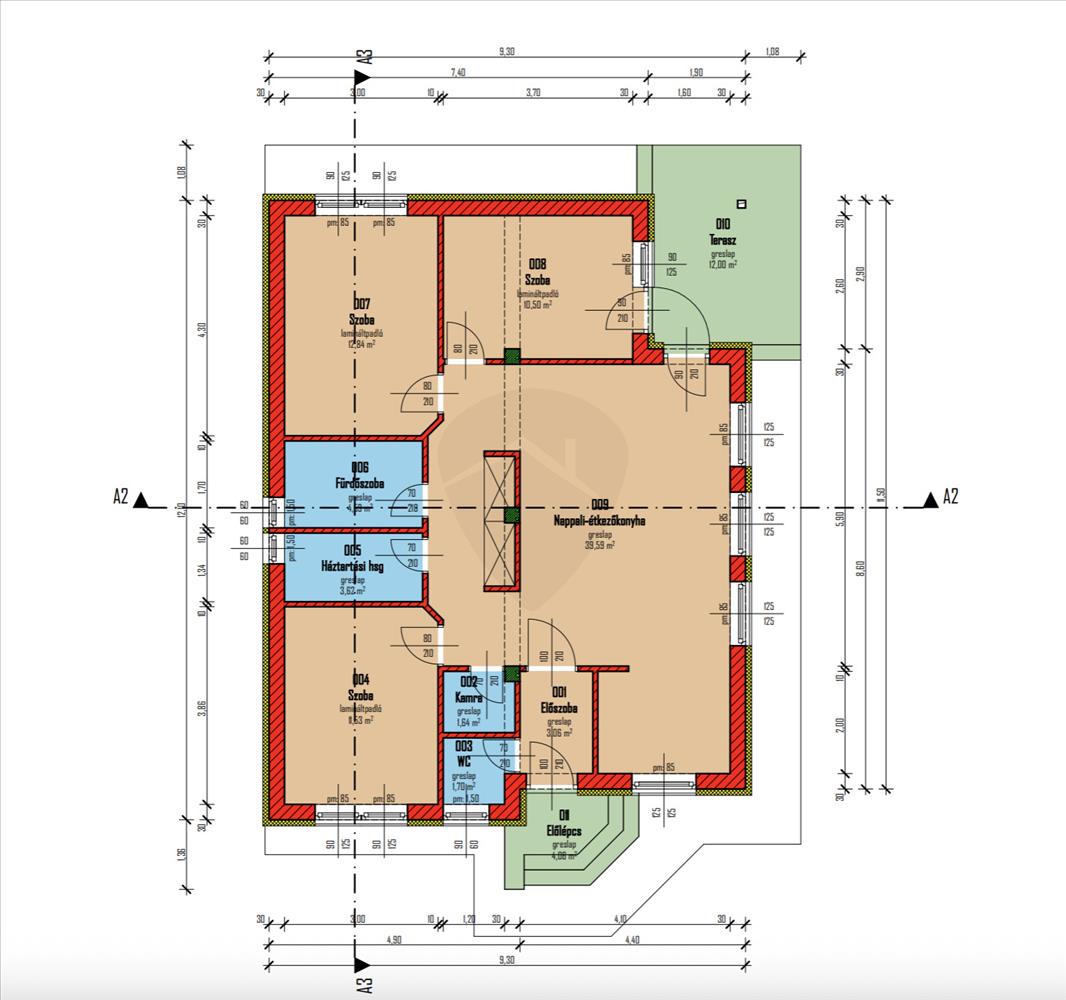 ✔ Falazat: Porotherm p30n+f tégla, betonkoszorúval és fa födémszerkezettel