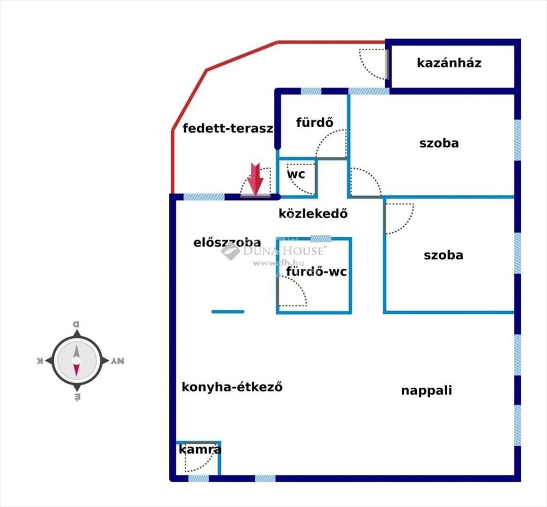 A 114 nm alapterületen jelenleg 2 hálószoba, és egy hatalmas nappali, 2 fürdőszoba (+wc) került kialakításra, azonban könnyedén 4 hálószobássá alakítható.